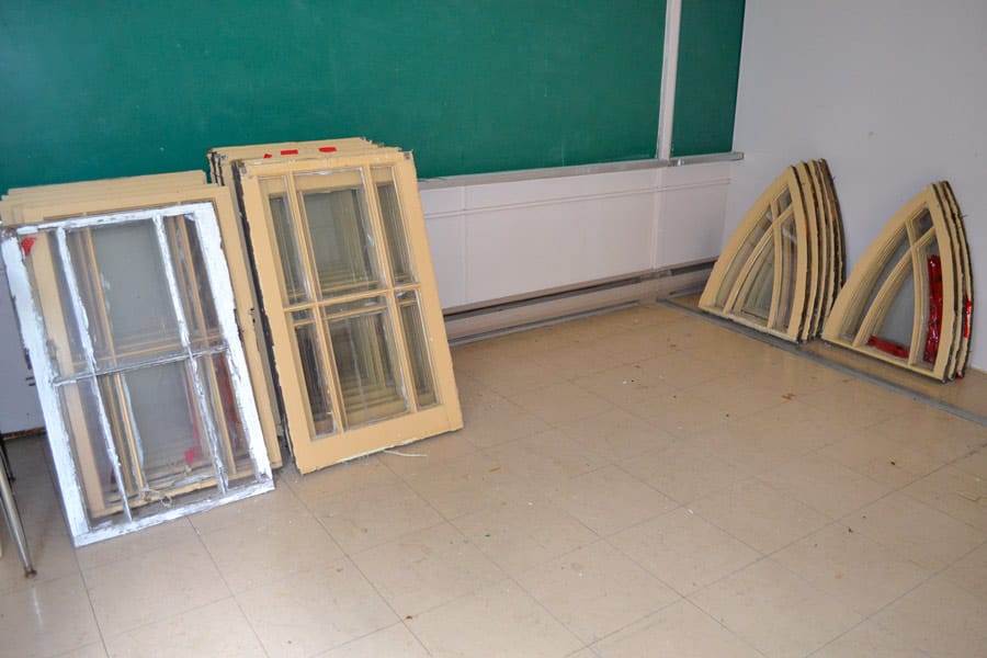 One window is installed and another awaiting installation on Sept. 3. Photos by Joanne Shuttleworth