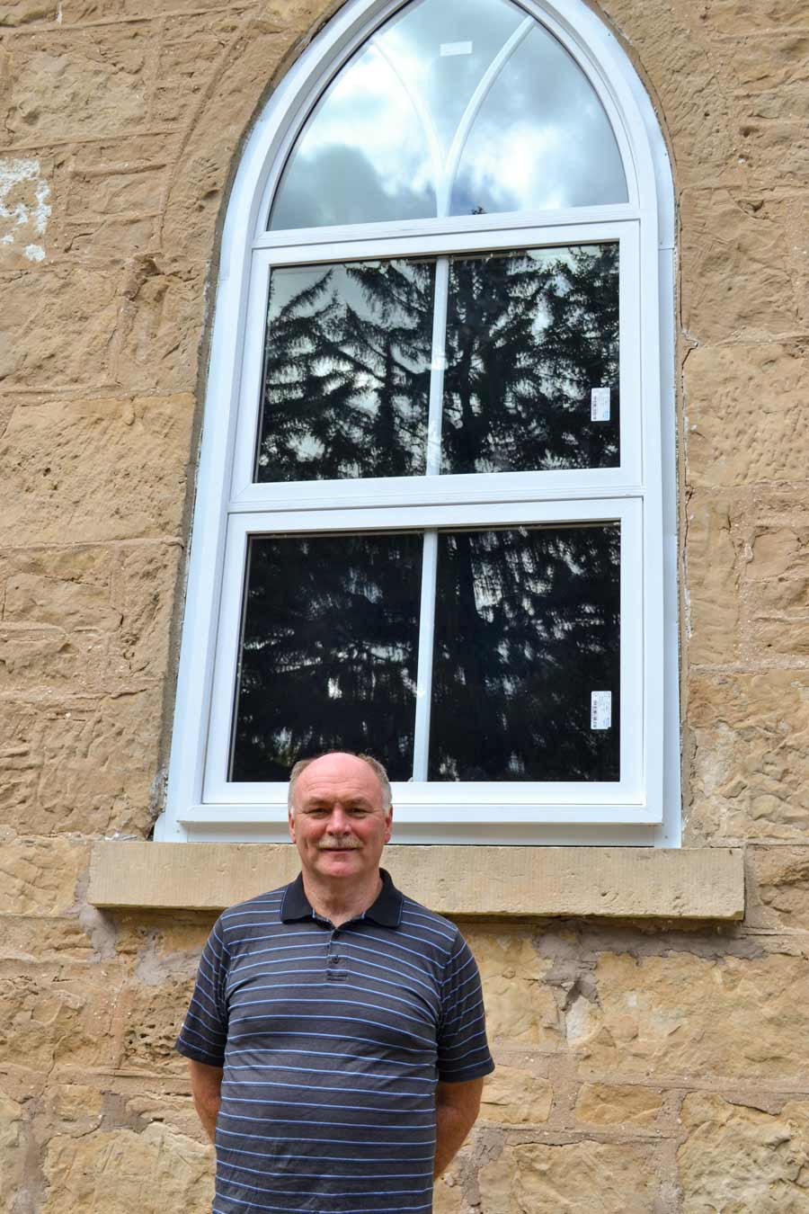 Pastor Adrian Lahey said replacing the windows in the old stone church, built in 1861, has been on the radar for a few years. They will allow more light in the church and a breeze because they can be opened. They are also energy efficient. There are 10 windows that will be replaced during this project, at a cost of about $35,000.