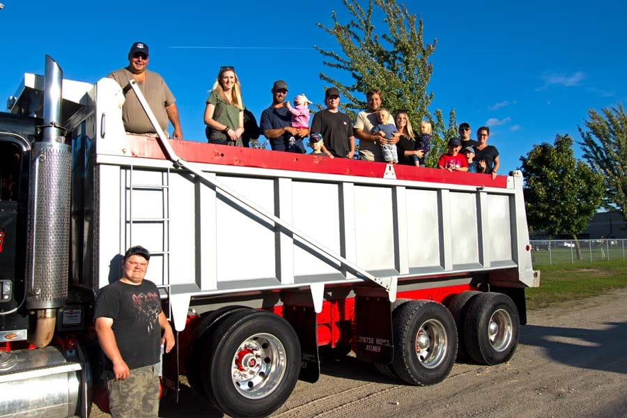 Ties and pies - The Arthur United Church had a float in the Arthur Fall Fair parade on Sept. 10 and its members took the fair’s theme - Family Ties and Homemade Pies - to heart, sporting blueberry and cherry pie costumes with neckties decorating their float. Photos by Joanne ShuttleworthEmma Hansen, 4 and Alex Densmore, 3, were on the float organized by the Optimrs for the Arthur Fall Fair parade. The fair was virtual but the parade, on Sept. 10, wove its way through town and many residents came out to watch.Family affair - Clark Brothers Contracting was all about family for the Arthur Fall Fair. The brothers - and their families - were part of the Arthur Fall Fair parade on Sept. 10. While the fair was virtual, the parade was real and wove its way through residential streets in town.