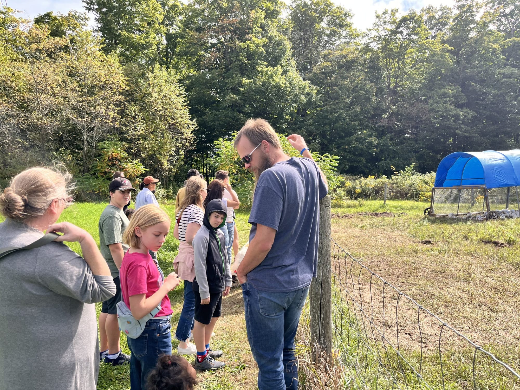 Visitors line up as they head out on a tour of the farm.