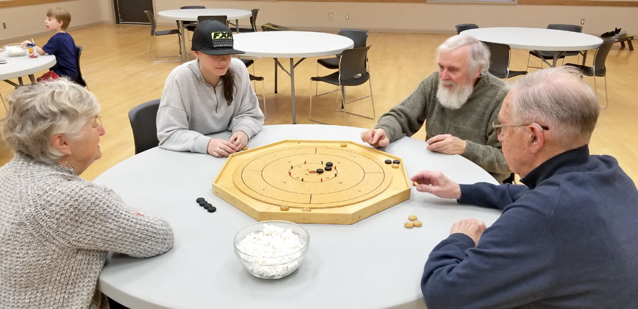 Fun and games – The Optimist Club of Alma hosted a Family Games Night on March 10 at the Alma Community Centre. There were numerous games to choose from at the free event, plus snacks for all. Crokinole was a popular choice at the event. Photos by Glenn George