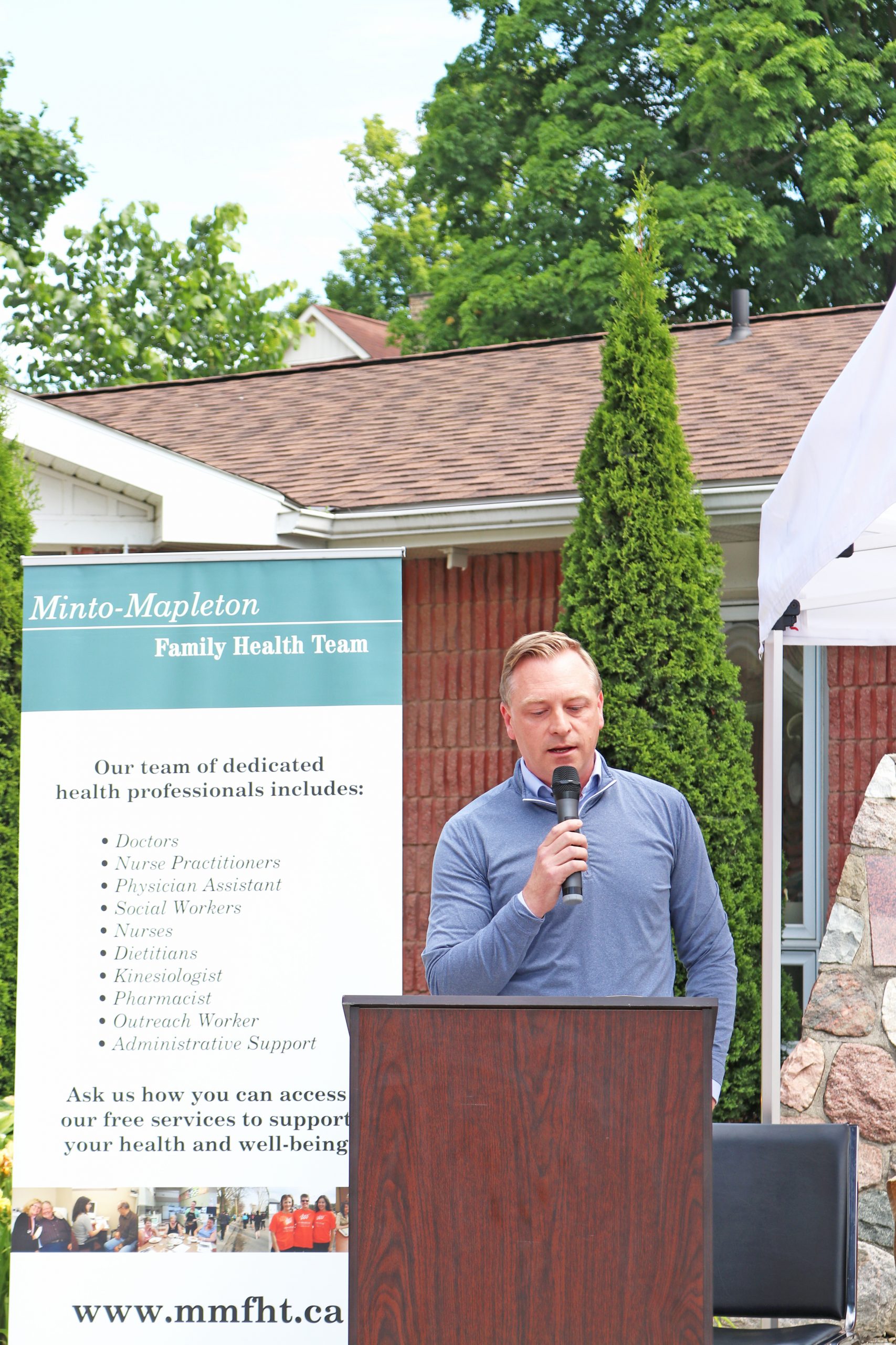 The event featured several speakers, including Perth-Wellington MPP Matthew Rae, MP John Nater, Minto Mayor Dave Turton and clinic staff.