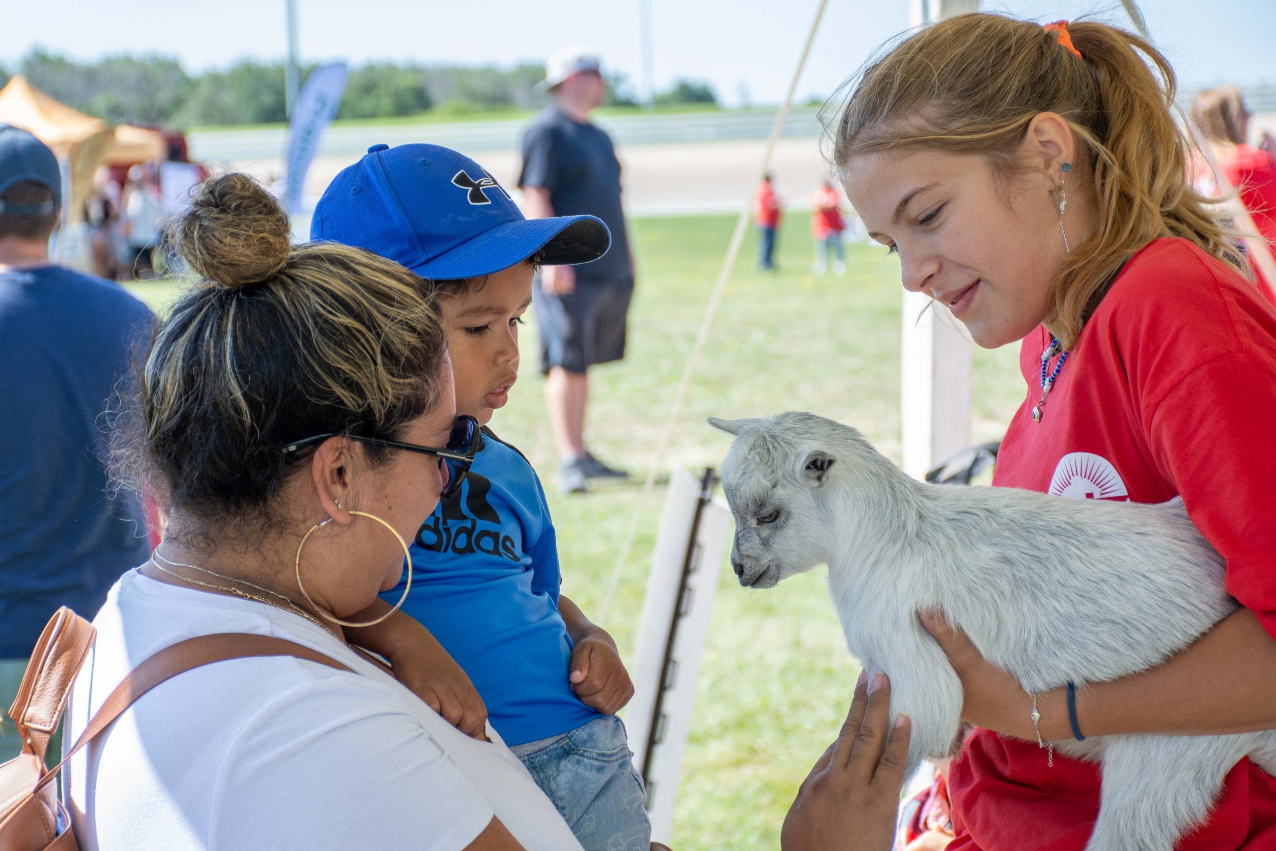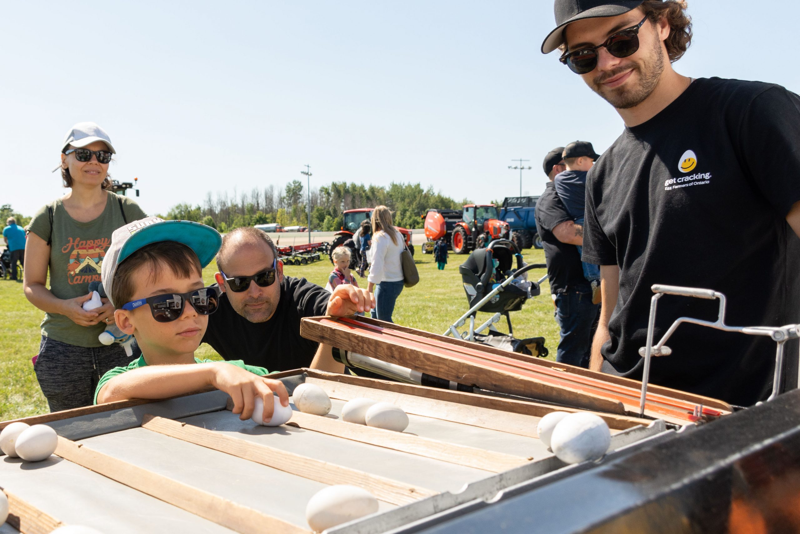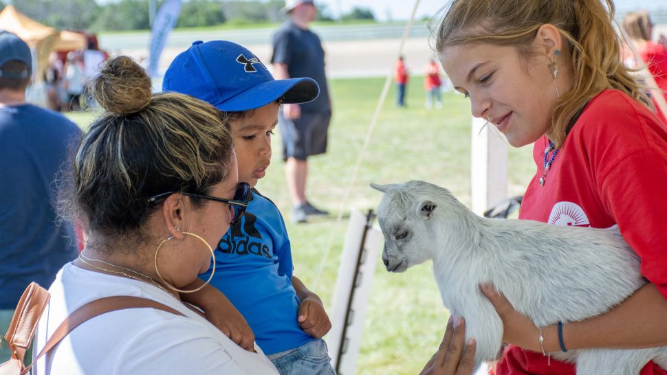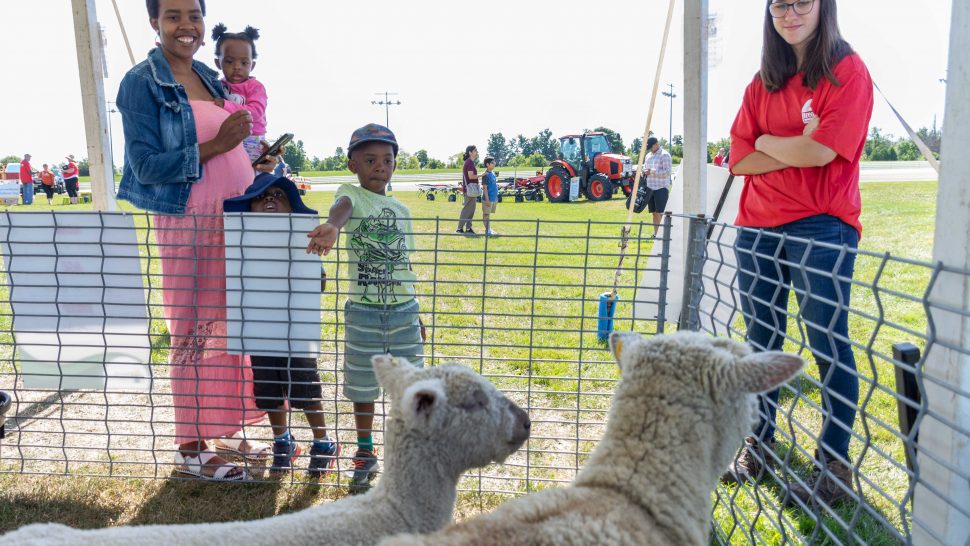 Around 880 people, mostly made up of families with young children from urban and suburban areas, spent Saturday morning and afternoon connecting with those who grow and produce food, learning about modern agricultural technology, equipment and animal husbandry at exhibits surrounded by the racetrack.
