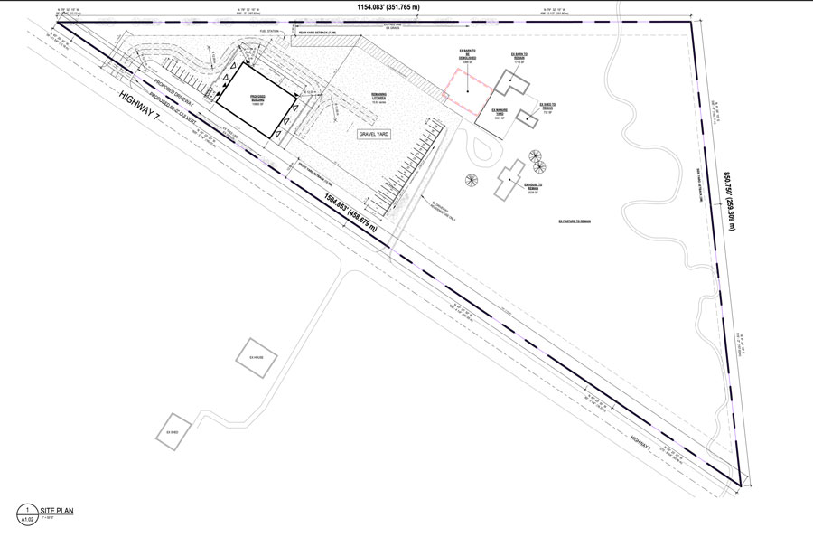 The proposal would remove a barn and replace it with a repair shop and parking.