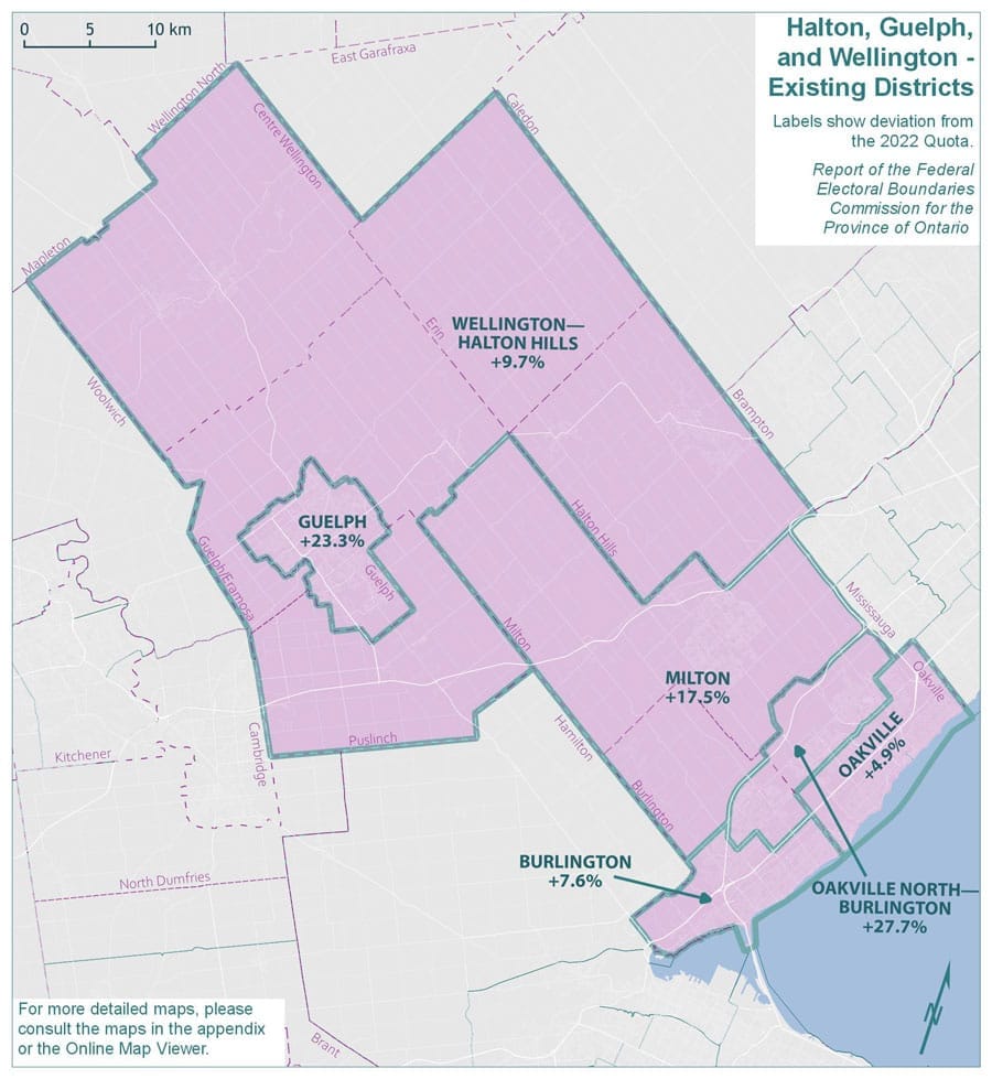 People living in the south-end of Guelph will likely be joining the Wellington–Halton riding, and people living in the southern part of Halton Hills will likely be joining the new riding of Milton East–Halton Hills South.