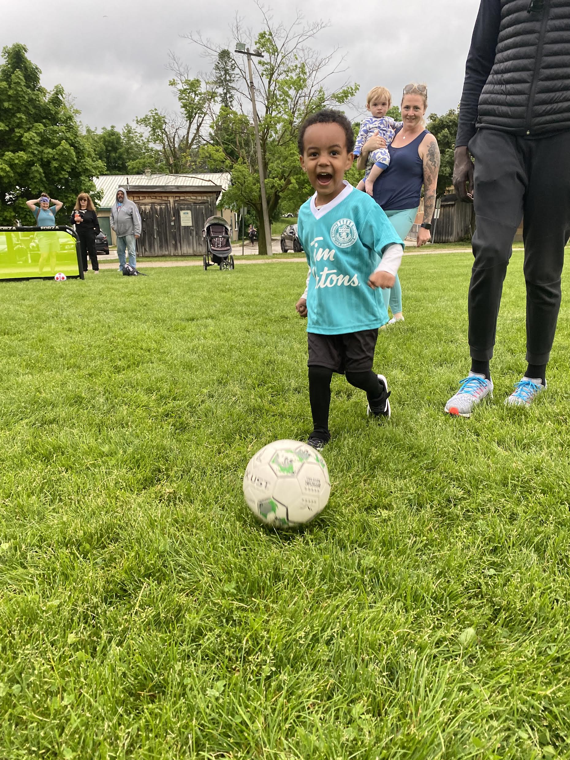 Gaatnor Kuon chases the ball at Victoria Park in Fergus.