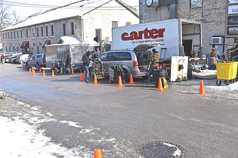 Lights, camera, action! - St. David Street bridge was closed in Fergus on Feb. 8 for a movie shoot. Most of the activity was concentrated on the alleyway by the Brew House.