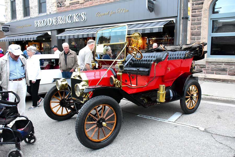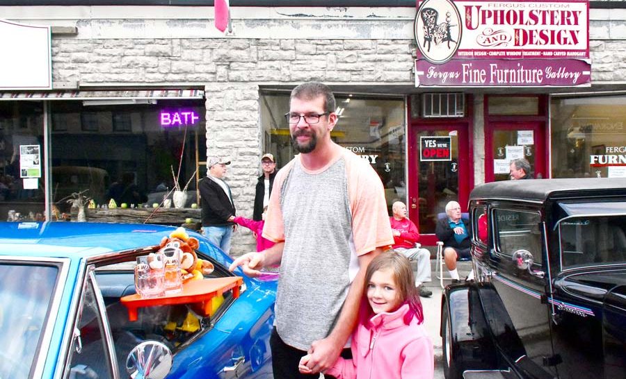 The 22nd annual car show sponsored by the Fergus BIA drew a good crowd downtown on the evening of Sept. 6. As usual St. Andrews Street was blocked off at Tower St. and St. David streets so the patrons could mingle among the cars and pick out their favourites. Newer cars as well as old ones were driven to the event.Ken Neary explainsto his daughter Lily about drive-ins from days when food was ordered and brought out on trays and placed on the car windows. Photos by Bill Longshaw