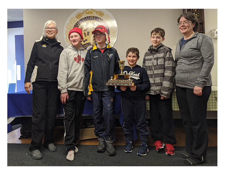 Little Rocks – The Fergus Curling Club’s Little Rocks league hosted its annual bonspiel on Feb. 8. The event had eight teams with one draw. The winning team represented the Ayr Curling Club. From left: Lynda Waterhouse, of the Fergus Curling Club, with Ayr’s skip Sam Brown, Ryerson Hargrave, Elliott Riedl, Paul Poirier and coach Dawn Sherk.