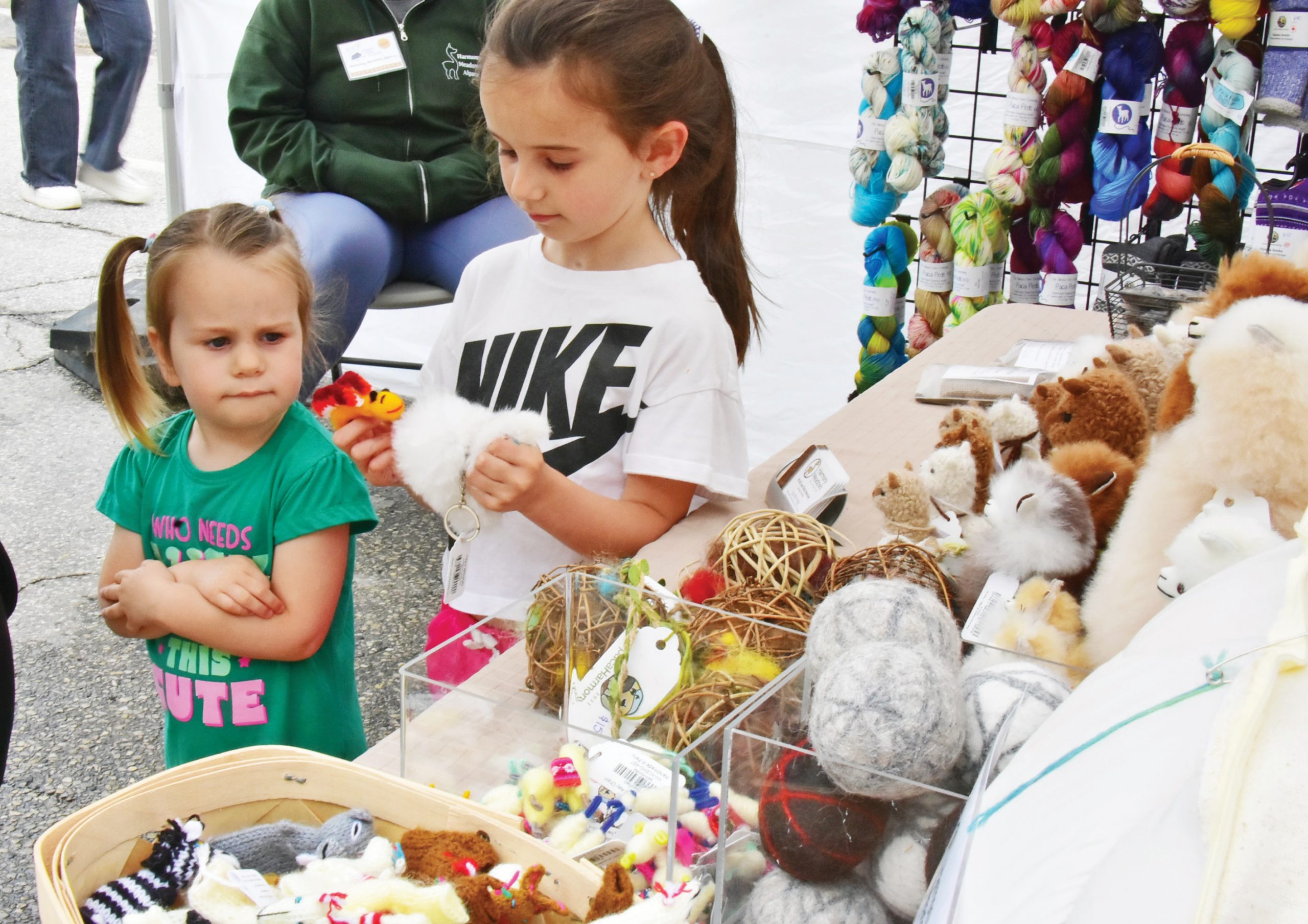 Isabelle and Leena Gilies, from Fergus, check out some soft toys made with alpaca fibres.