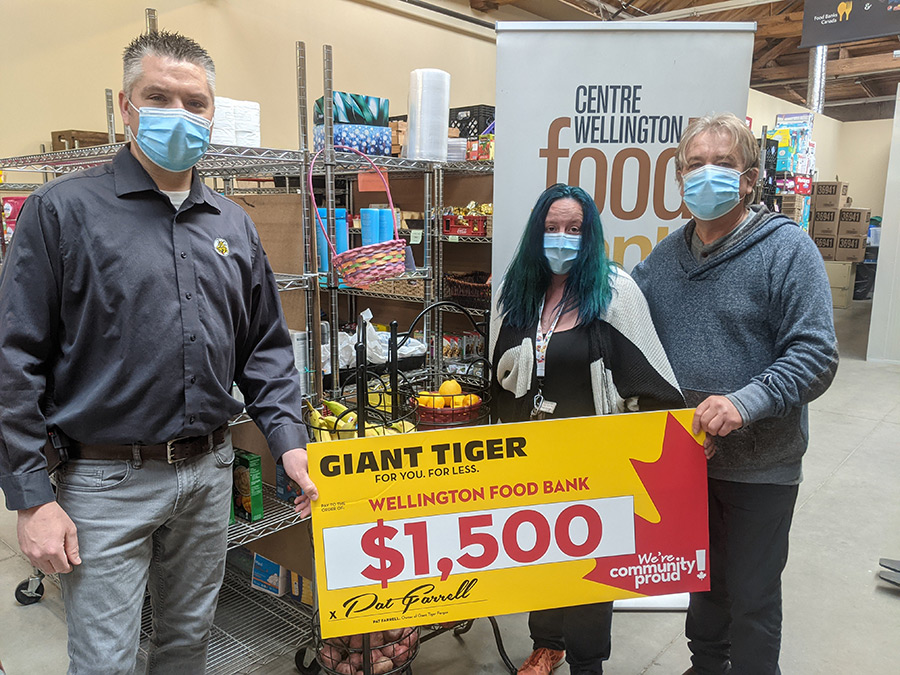 Food bank contribution – The Fergus Giant Tiger store recently made a $1,500 donation to the Centre Wellington Food bank. From left: Giant Tiger manager Pat Farrell, food bank volunteer Amanda MacDougall and food bank manager Fred Aleksandrowicz.