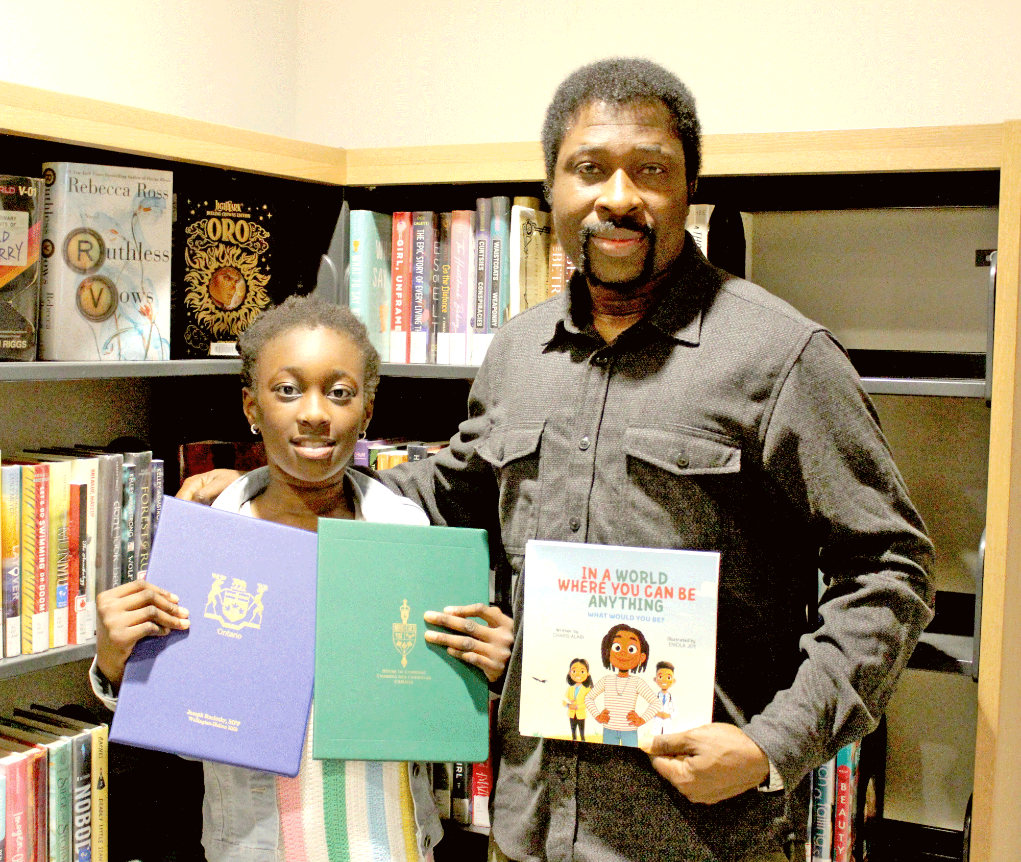 Alabi received certificates of recognition from Wellington-Halton Hills North MP Michael Chong and Wellington-Halton Hills MPP Joseph Racinsky for her book.