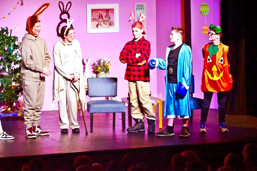FERGUS – A whimsical convention held on Easter Island arranged by Easter rabbits turned out to a bit of a calamity on April 5 at the Fergus Grand Theatre. The Centre Wellington Children’s Drama Club presented Season’s Greeters directed by Gerard Gouthro where all the mascots for the holiday seasons come together for a convention. It was supposed to be the 150th anniversary of Santa winning the trophy for the most popular but there’s a surprise ending.
