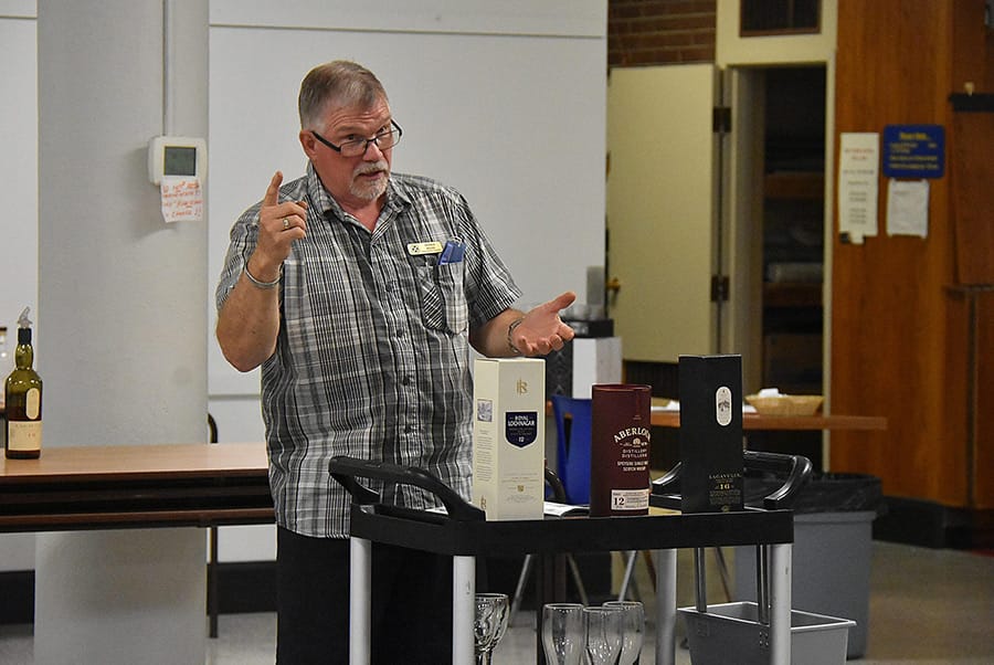 Gerald Boels from Aboyne is a member of the Companions of the Quaich, an organization of about 25 members in Fergus who meet to enjoy the taste and history of Scotch whisky. Boels offered a little history about each of three Scotches offered at the tasting.