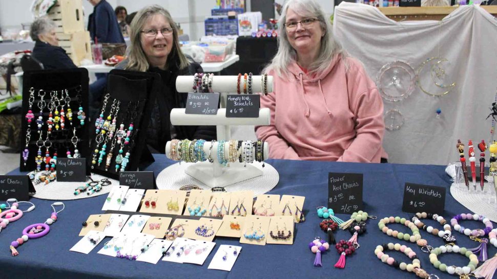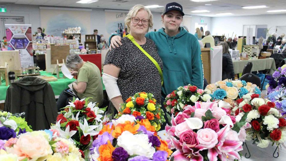 Fergus Legion Ladies Auxiliary hosts annual Spring Craft Show and Bazaar SubmittedMay 1, 2025 @ 9:00 amNews Jewelry – Dianne Benoit, right, was among the vendors attending the market at the Fergus Legion on Saturday. Her friend Joan Kenyon helped at table displaying Dianne Marie’s Creations. Photos by Robin George Fergus Legion Ladies Auxiliary volunteer Mary Thomson sold surprise, pre-wrapped gifts during the market, including toys and gifts children could give to their moms or grandmas on Mother’s Day. The new items in the packages were wrapped by the Ladies Auxiliary. Photos by Robin George Happy pots – Donna Wood sold pots painted with cheerful faces during the market at the Fergus Legion. Bright bouquets – Elizabeth Arthur, right helped her grandmother Joan Arthur sell bright bouquets of artificial flowers. ABOVE: Cookies – Sarah Diefenbacher, left and Josie Downs sold Girl Scout Cookies during the Legion Ladies Auxiliary bazaar. FERGUS – The Fergus Legion Ladies Auxiliary held its annual Spring Craft Show and Bazaar on April 26. Submitted