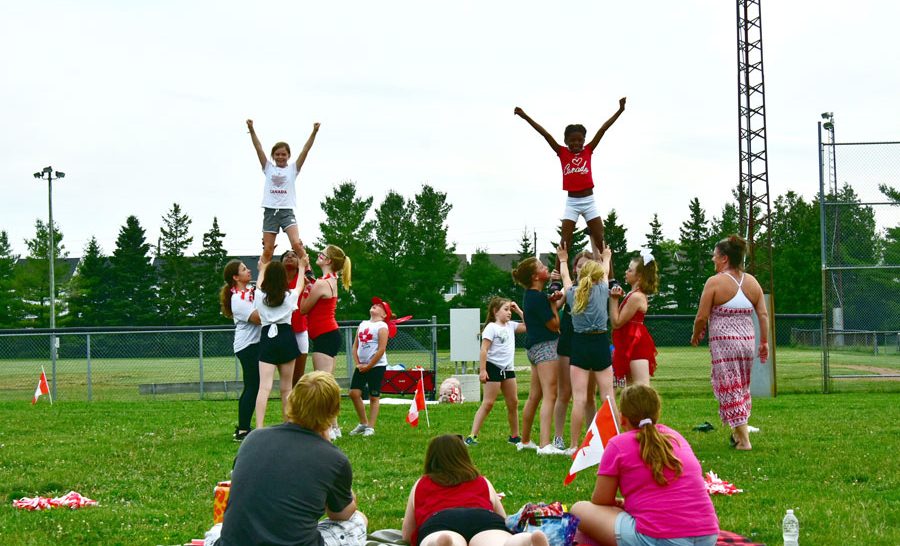 FERGUS – The grounds behind the Fergus Sportsplex were teeming with excitement over the weekend as locals and out-of-towners celebrated the Canada Day long weekend. Events included a dog agility show hosted by Wild Ontario, Zumba classes led by Sarah Gray, Canada themed Bingo, outdoor games, the Fergus Brass band, the Bears Cheerleading show and much more. Food trucks were on site and the evening came to a close with celebratory fireworks that could be seen and heard all over town.