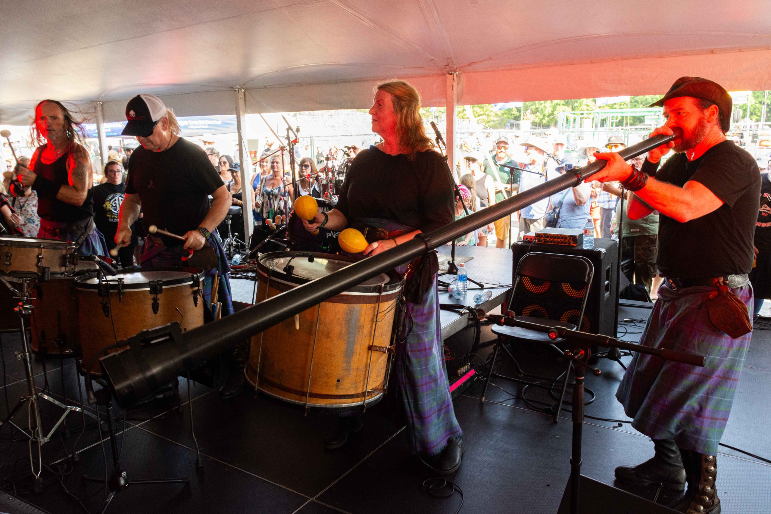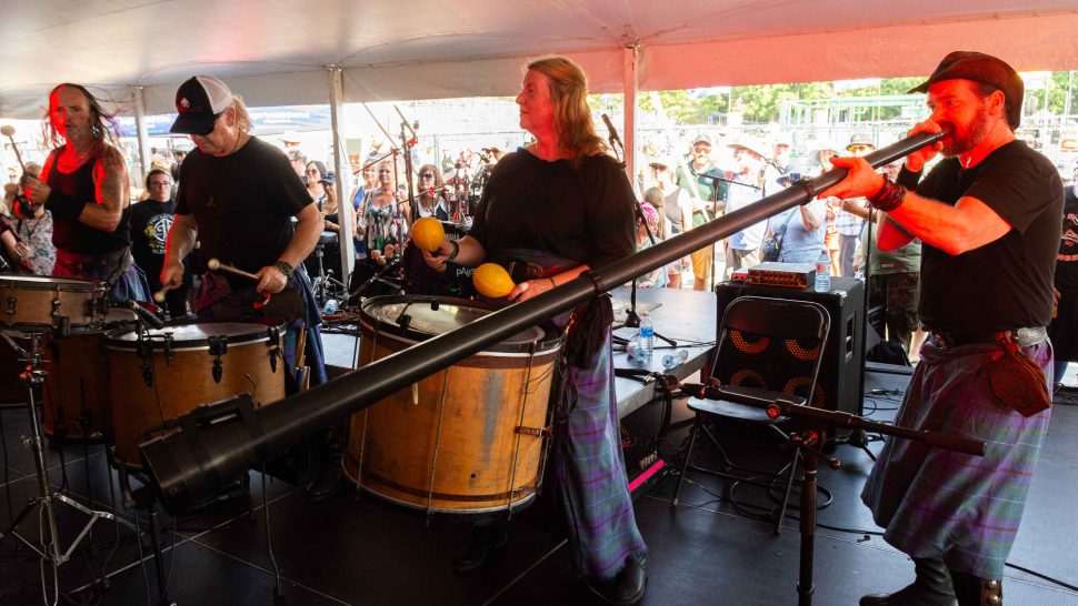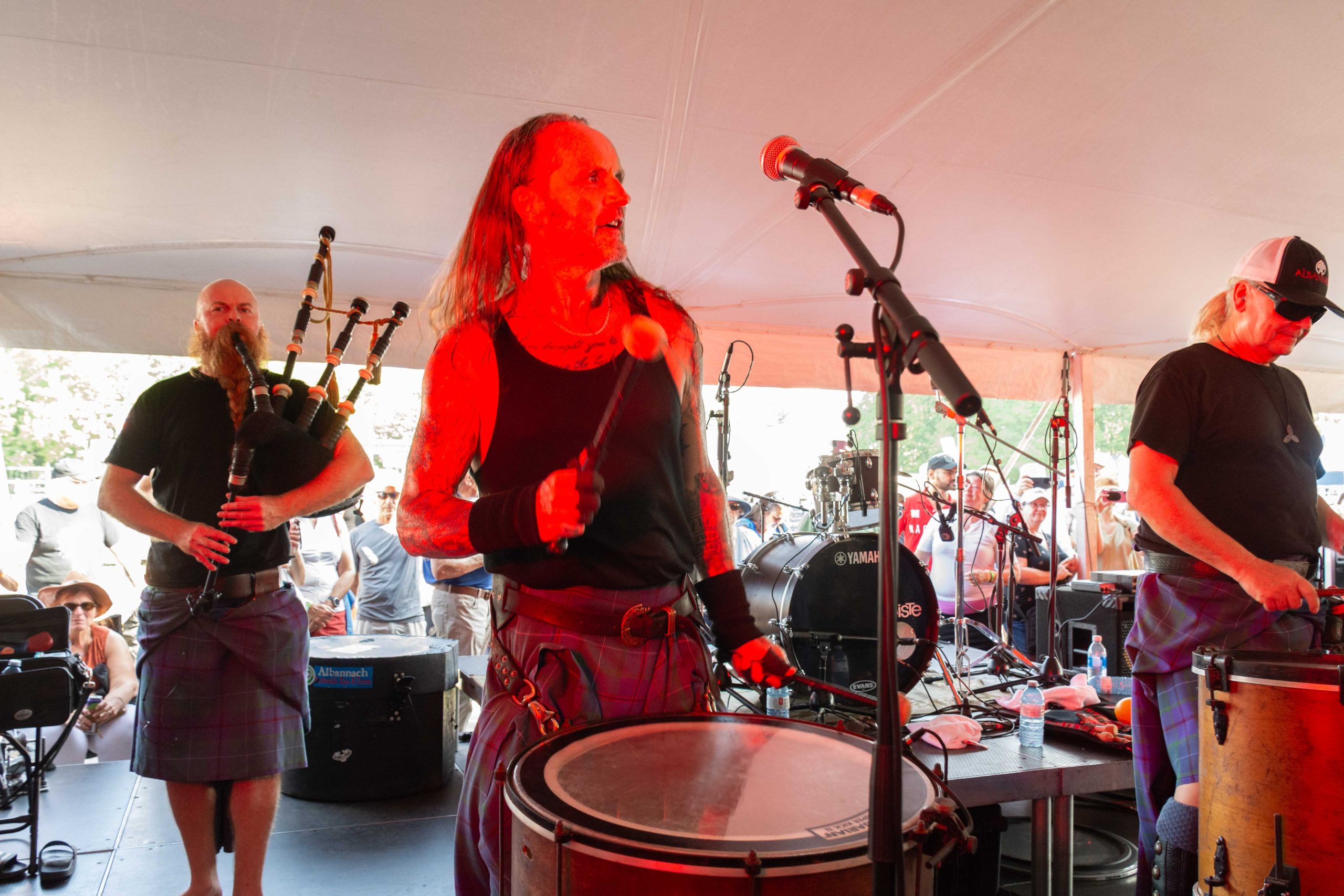 Festival favourites Albannach put on a high-energy show with pounding drum beats and wailing bagpipes before their return to the main stage for a Scottish Saturday Night.