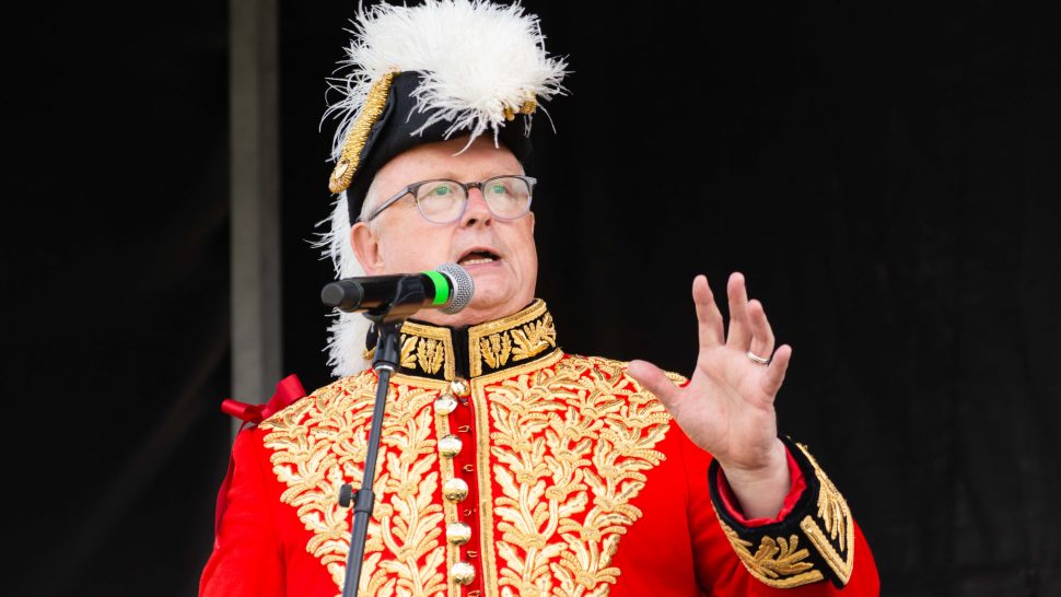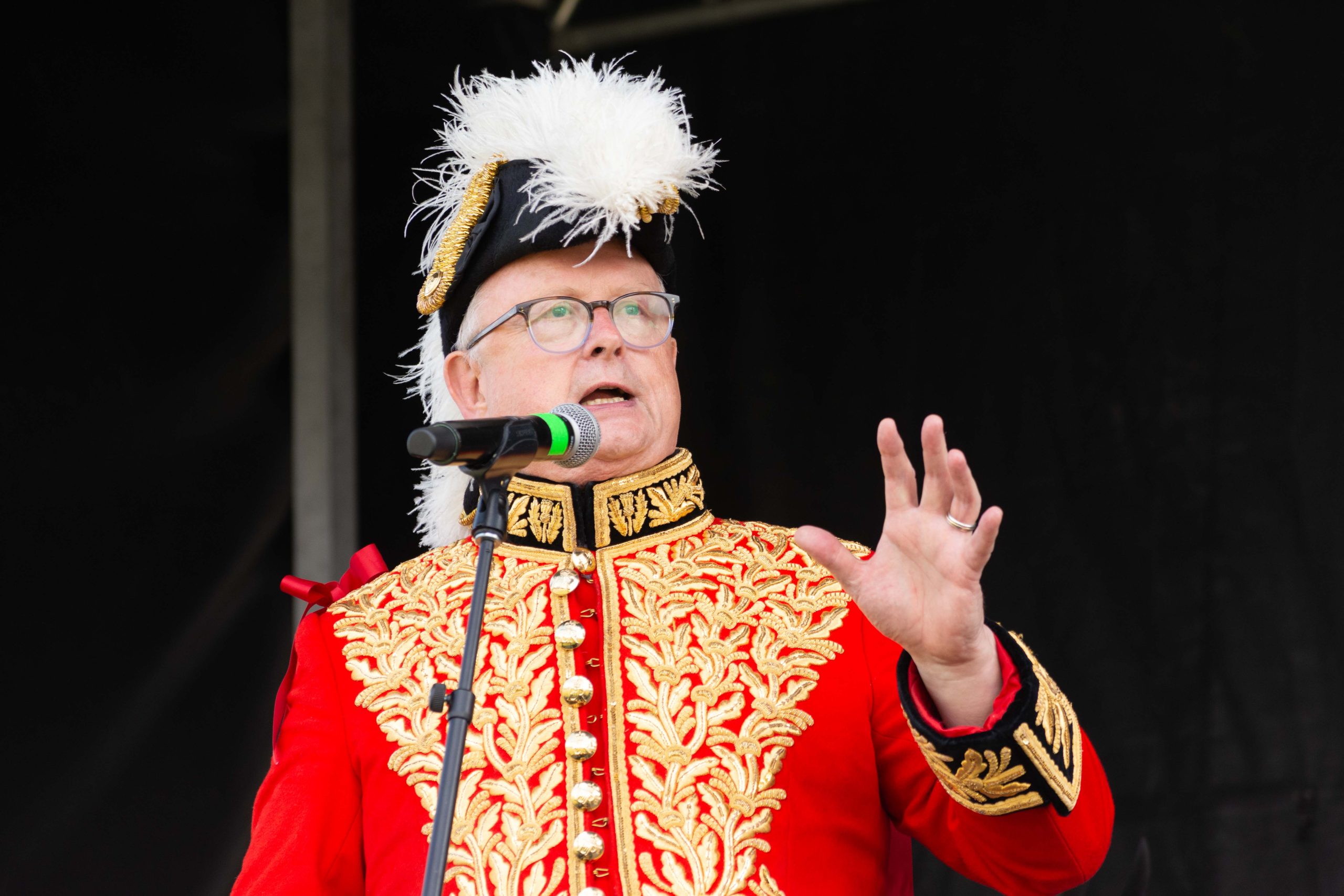 FERGUS – With the whack of a sword against a shield, Scotland’s scarlet and gold bedazzled Lord Lyon King of Arms opened the 80th Fergus Scottish Festival and Highland Games to cheers and applause on Saturday.