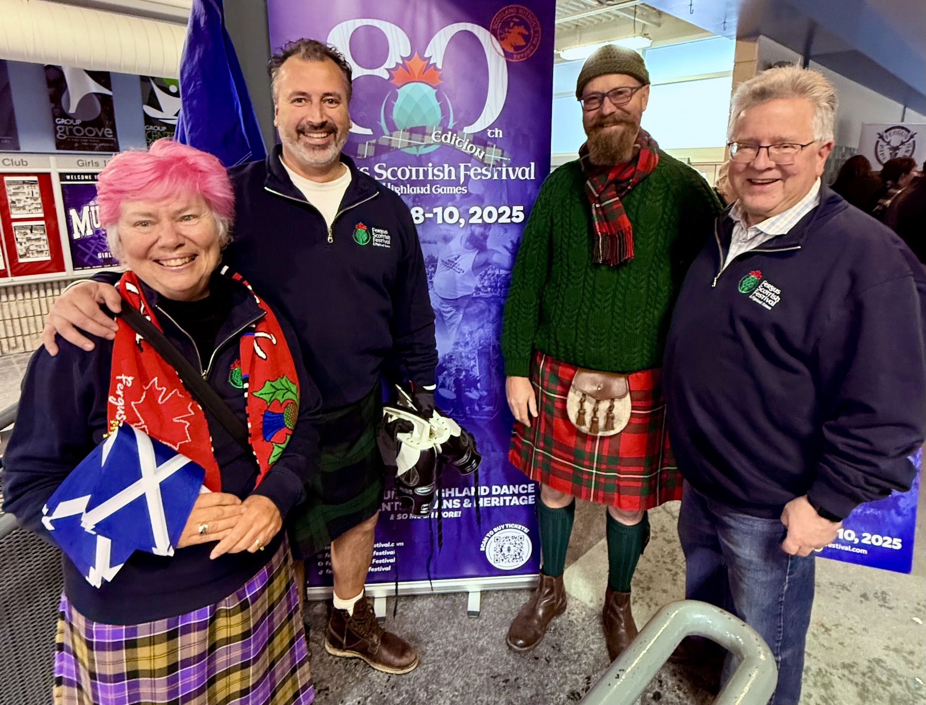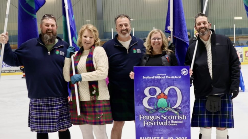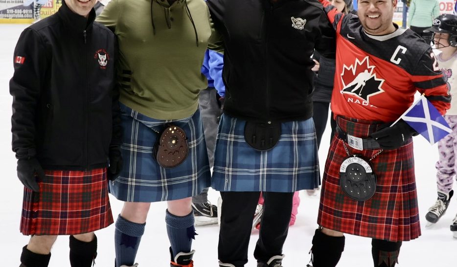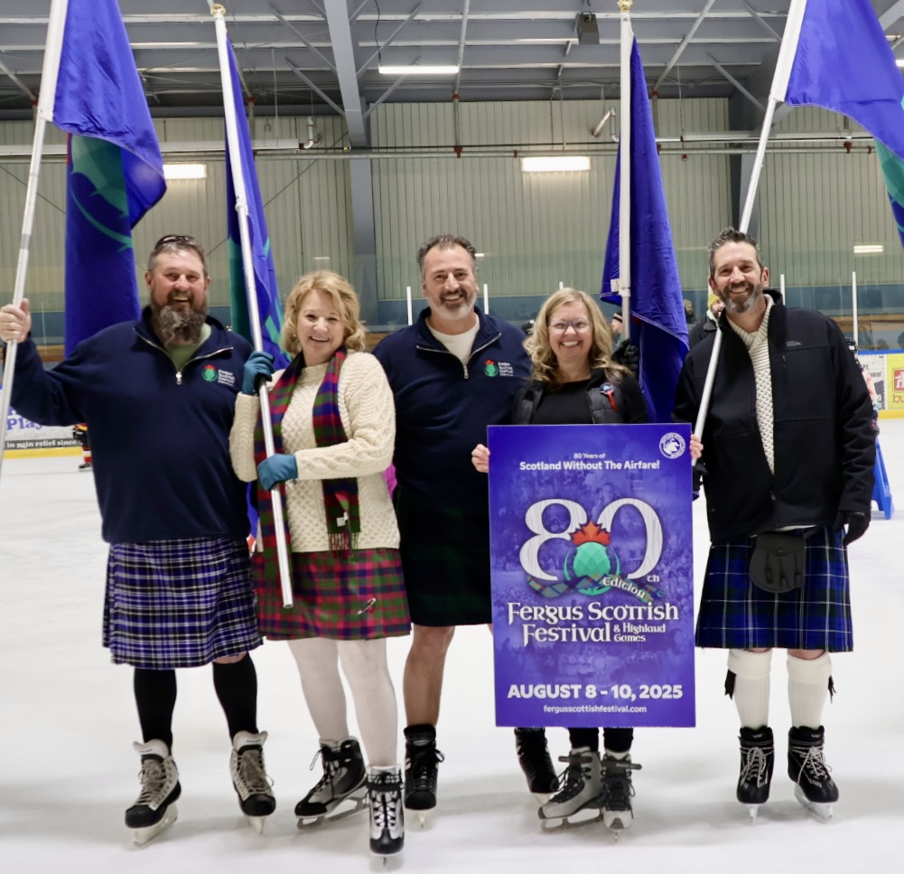 FERGUS – Hundreds of people flocked to the Centre Wellington Community Sportsplex on Saturday to enjoy the annual Kilt Skate. The event was a kick-off of sorts for the 80th edition of the Fergus Scottish Festival and Highland Games, which runs from Aug. 8 to 10. The Fergus Pipe Band, Grand Celtic Pipe Band and the Blue Bonnet Lassies Highland dancers entertained skaters who also enjoyed delicious snacks and snapped up festival merchandise.