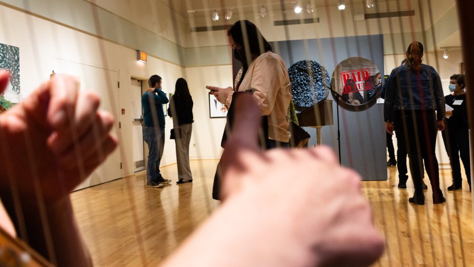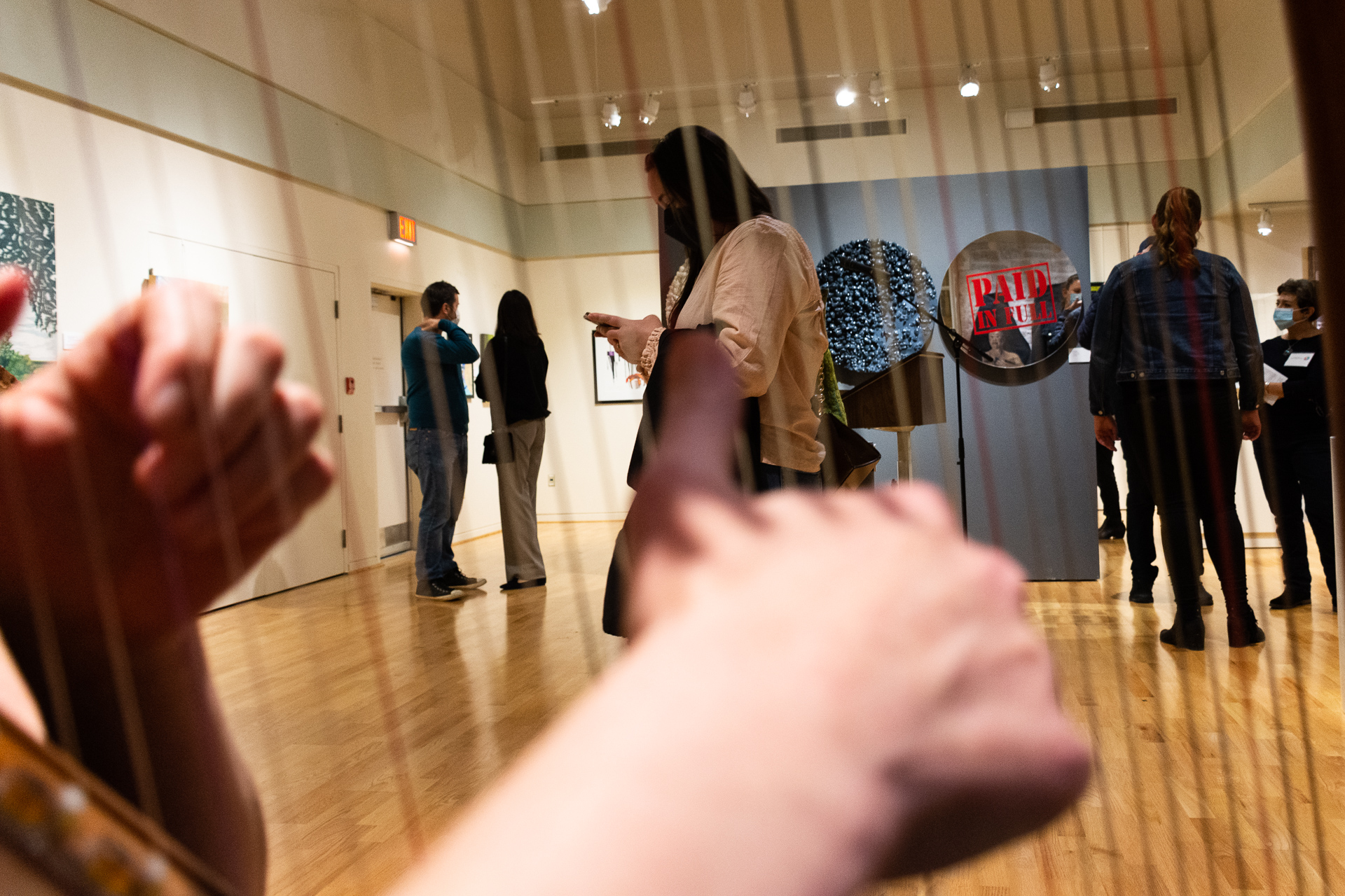 Guelph musician Shannon Kinsbury gently plucked the strings of a harp as attendees filled the hall on April 7 to view works from 45 artists for the first time since the pandemic postponed the annual Insights Juried Exhibition of Fine Arts.