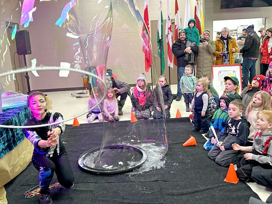 MINTO - A bubble show, a new wrinkle at the 2023 Fire and Ice Family New Year’s Eve Celebration hosted by the Town of Minto and Minto Fire at the Palmerston arena on Dec. 31, was a big hit with the youngsters on hand. The event also included a fire show, ice skating, blacksmith demonstrations, a photo booth with the ice queen and princess and fireworks.