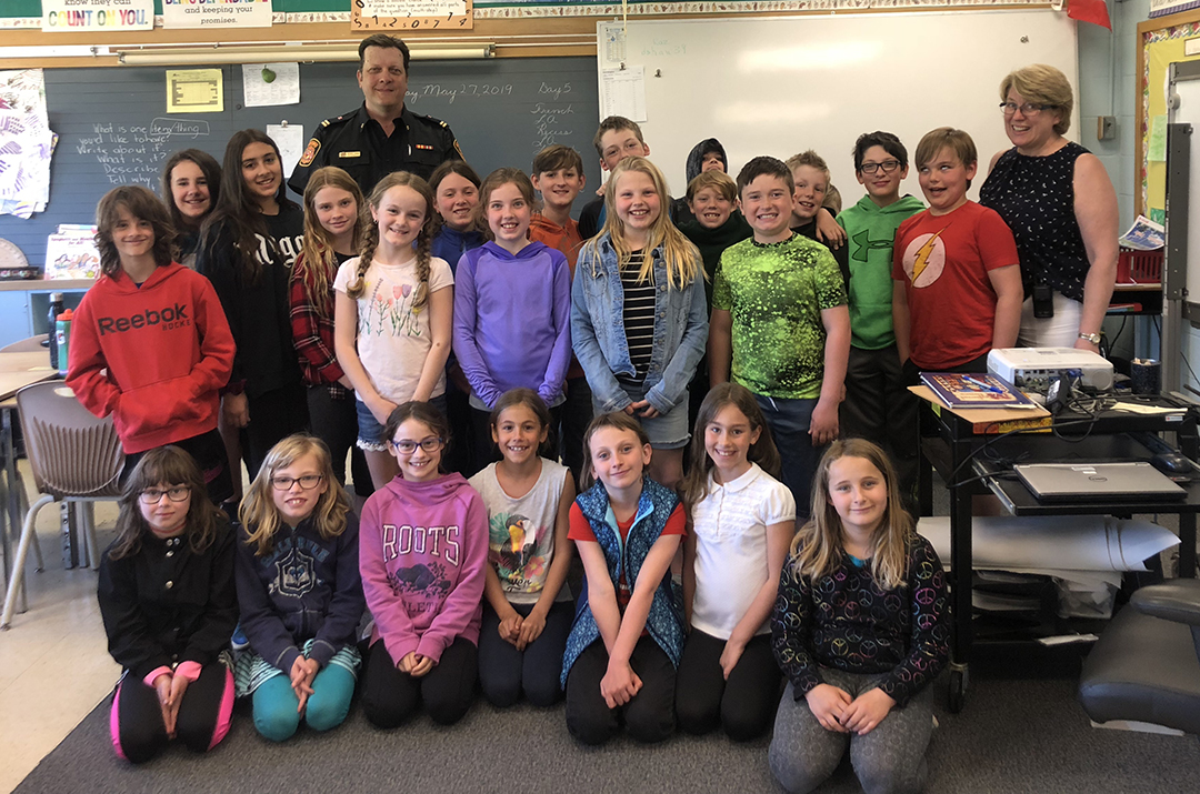 On May 27, the department presented Ms. Shaw’s Grade 4/5 class at Eramosa Public School, on 5th Line north of Brucedale, with a pizza party in acknowledgement of their completing 24 of 24 home fire escape plans.