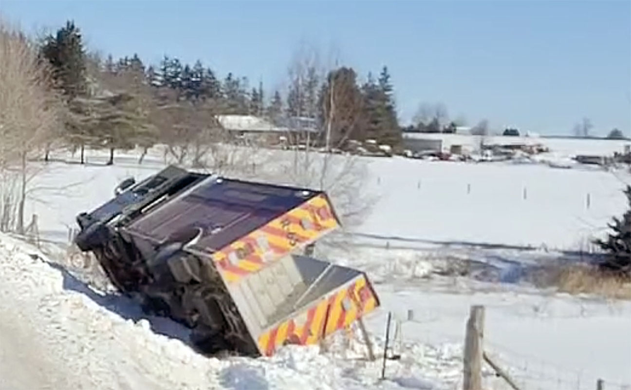 In a video posted to Twitter, Wellington OPP spokesperson Josh Cunningham stated the truck left the road on Sideroad 10 near Wellington Road 7, northeast of Salem.