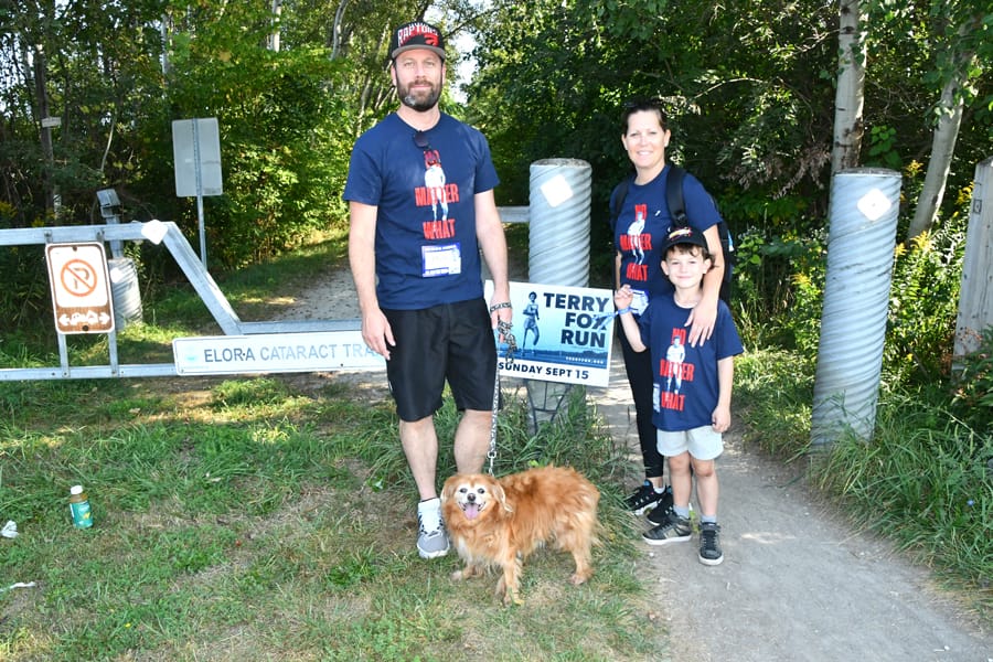 The Stanlick family – Jason, Janine, son Ben and their dog Chopsticks – get ready for the event, the family’s seventh Terry Fox Run.