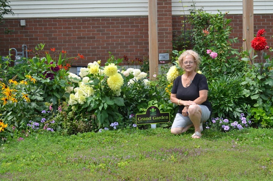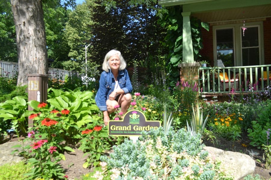 Patty Searle-Johnston of the Grand Garden Committee is pictured here in front of one of the gardens designed by Barb Reed on Forfar Street East.