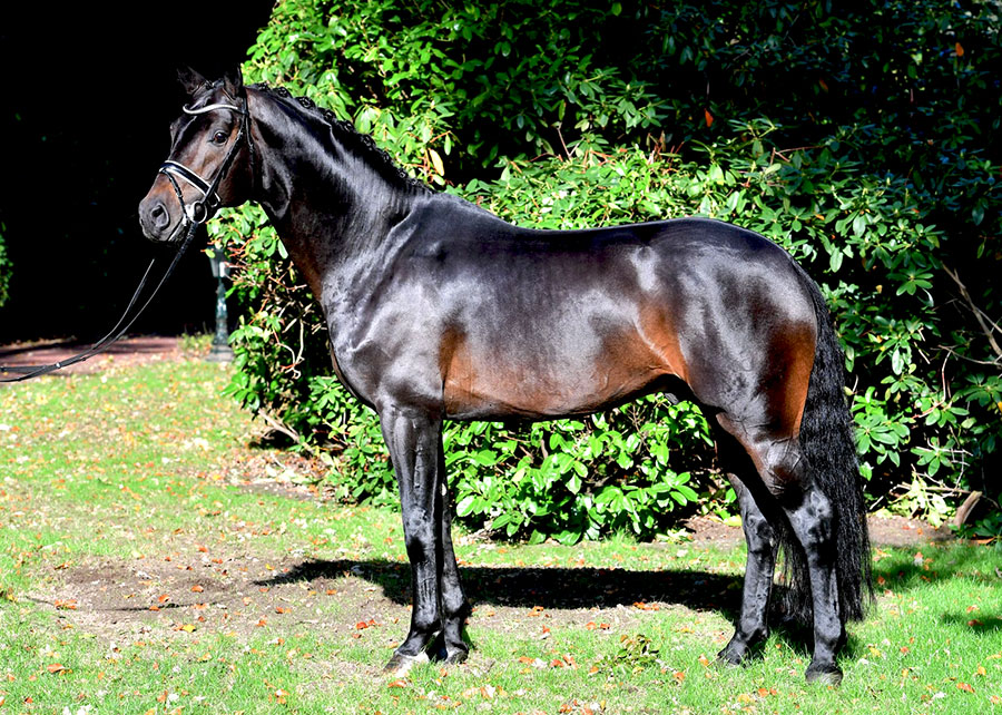 Feinrich is a dark bay Oldenburg stallion born in 2013, sired by Furst Heinrich, to dam Gesina. Both lineages offer high calibre ancestry, from the paternal line to that of Gesina, considered “the most important mare in modern Oldenburg breeding history” by industry breeders.