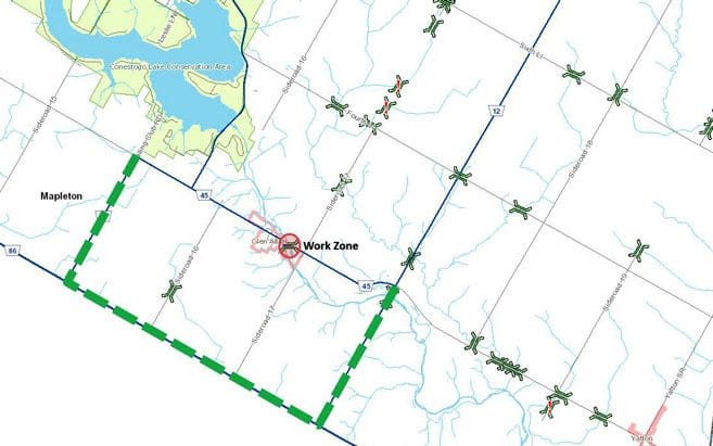 During the closure, traffic will be re-routed along a detour route utilizing Wellington Roads 12, 86 and 11.