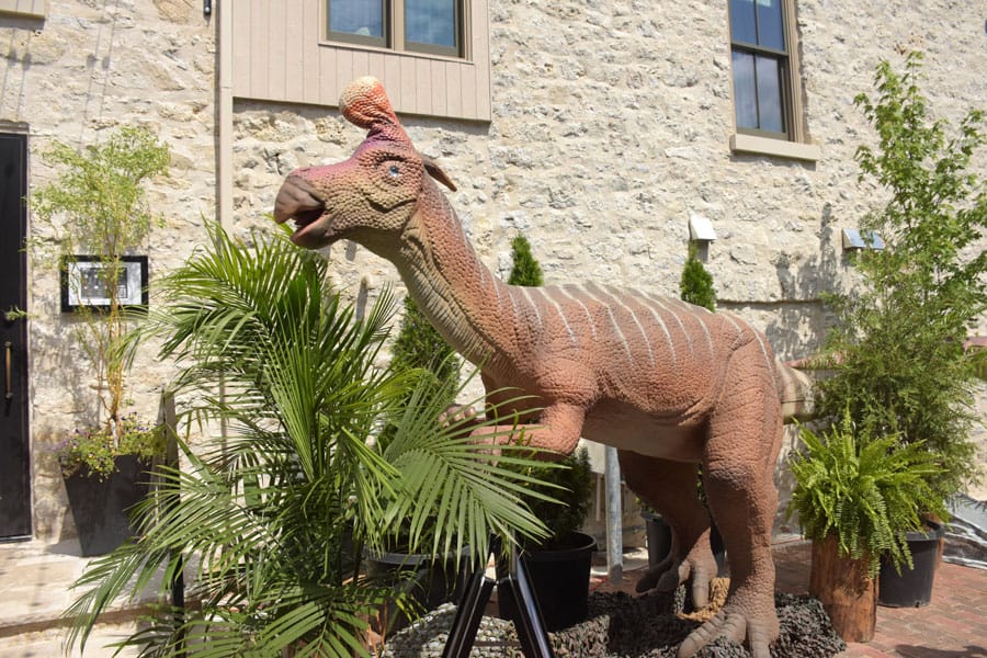ELORA – The Gorge Cinema is screening Jurassic World Rebirth until July 17 but it appears the dinosaurs have escaped the movie theatre and are already in downtown Elora. Gorge Cinema owners brought in these anamatronic creatures to hype the film. They are located in the new cobblestone walkway by the Elora Mews. The cinema has moved its entrance to the walkway as well.