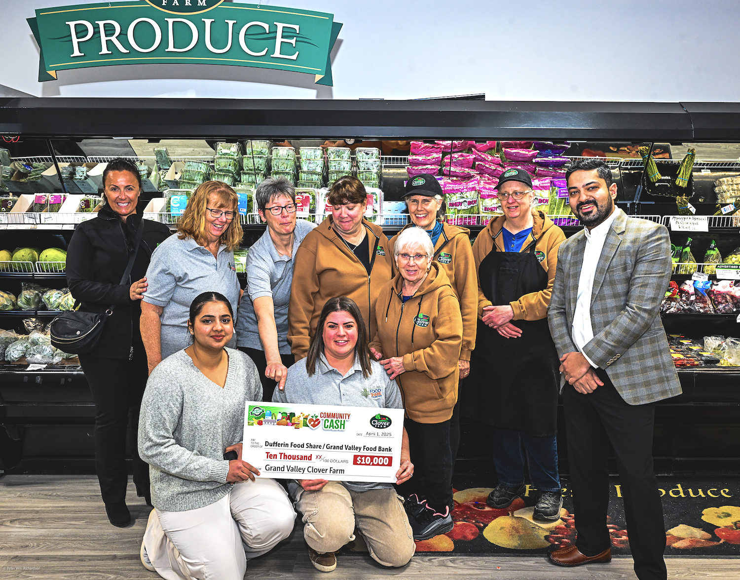 ORANGEVILLE – Staff members from Grand Valley’s Clover Farm grocery store recently presented a $10,000 cheque to representatives from the Orangeville Food Bank’s Dufferin Food Share.