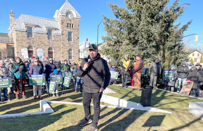 ELORA – The impact on the Greenbelt was the focus as dozens of local residents rallied here on Sunday afternoon to protest the provincial government’s Bill 23, the More Homes Built Faster Act.