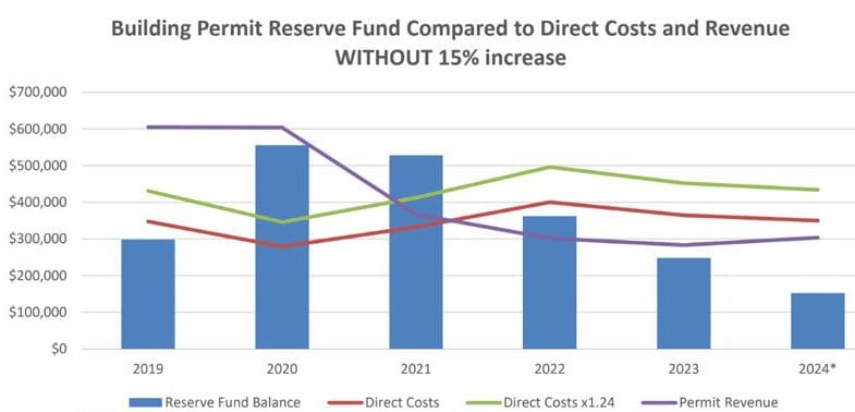 Without the increases, the building department would not be able to cover direct costs, further depleting reserves, the report states.