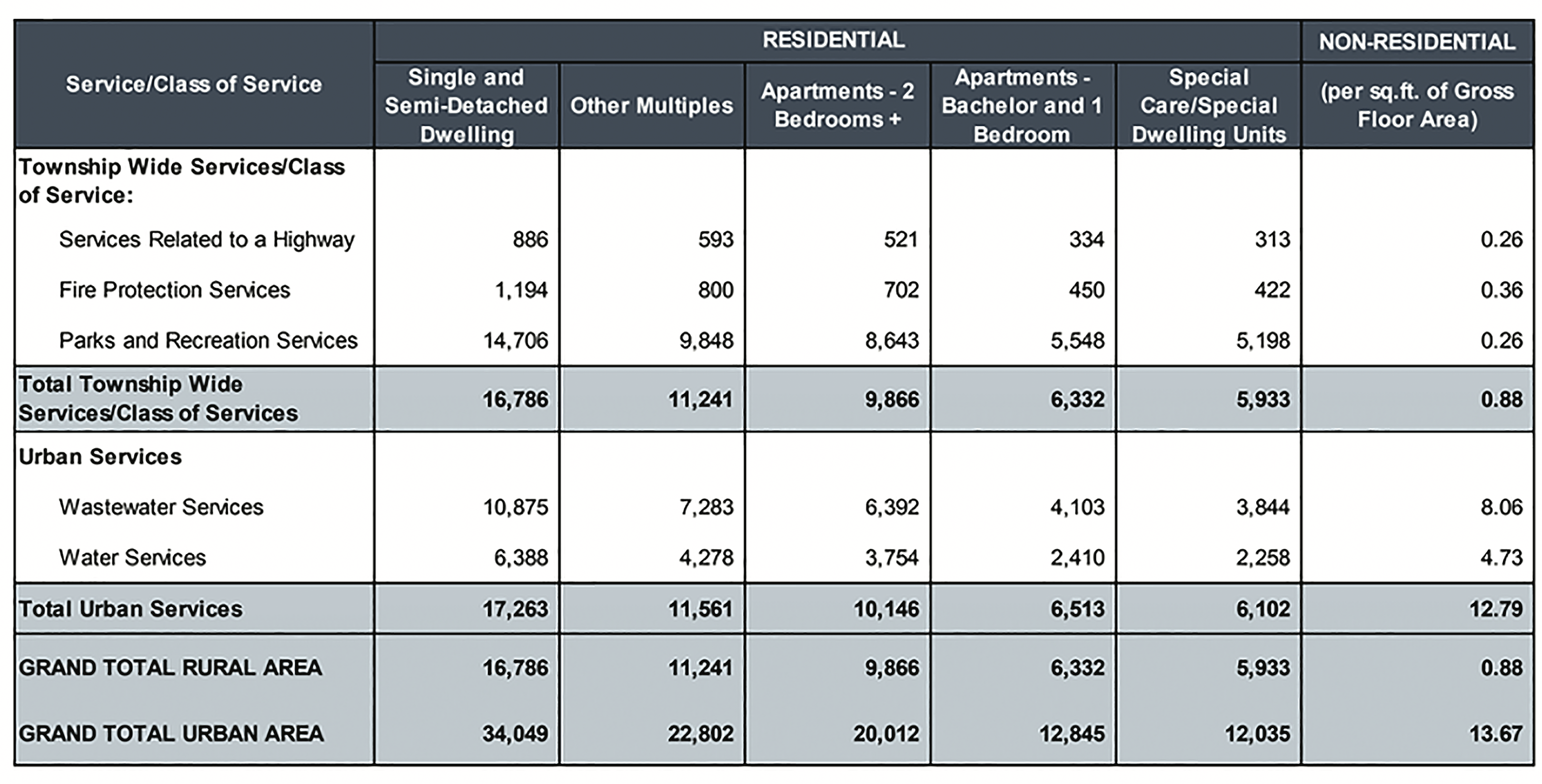 Development charges for rural apartments with two or more bedrooms would increase from $8,080 per apartment to $9,866.