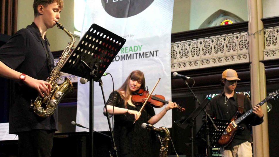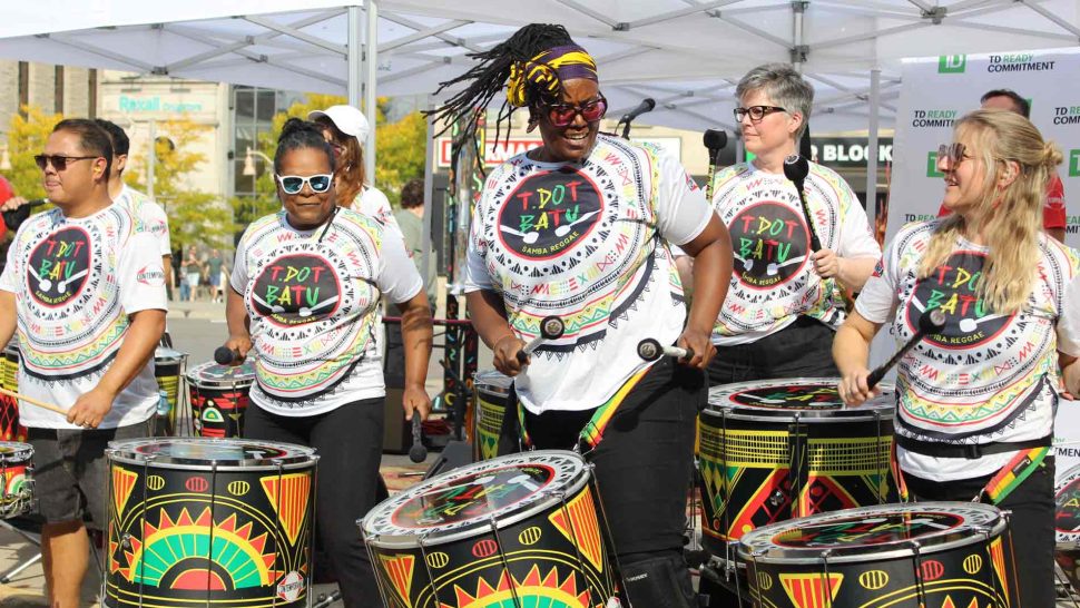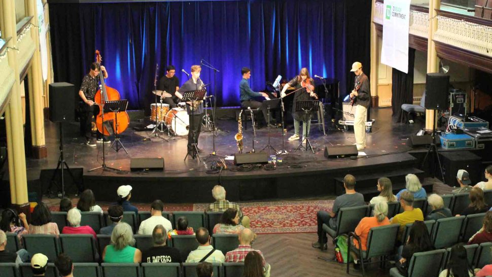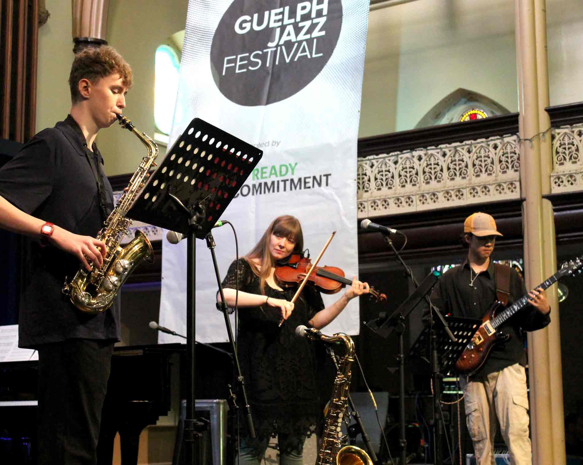 Guelph Jazz Festival gets community moving Robin GeorgeSeptember 17, 2025 @ 9:00 amArts & Entertainment The T.Dot Batu drummers played Afro-Brazillian samba-reggae, which they said started as a resistance act by Afro-Brazillian people. Their energetic set had people up and dancing in St. George’s Square during the Guelph Jazz Festival on Sept. 13. Photo by Robin George Waleed Abdulhamid played Afro-jazz with WAPAMA during the festival. Photo by Robin George From left, Max Senitt, Patrick O’Reilly and Waleed Abdulhamid of WAPAMA. Photo by Robin George The Guelph Youth Jazz Ensemble played with Aline Homzy at Royal City Mission during the festival. From left, Ben Hopkins, Amshu Bhat, David Ferreira, Sullivan Falls, Homzy and Atom Grimes. Photo by Robin George From left, David Ferreira, Homzy and Atom Grimes playing during the the Guelph Youth Jazz Ensemble's Guelph Jazz Festival performance. Marilyn Lerner, left and Lori Freedman, known together as Queen Mab, played at Royal City Mission on Sept. 13. Photo by Robin George From left, Thanya Iyer, Daniel G´linas and Emilie Kahn. GUELPH – The Guelph Jazz Festival took place from Sept. 12 to 14 in downtown Guelph. Robin George Reporter