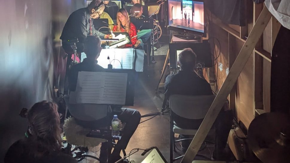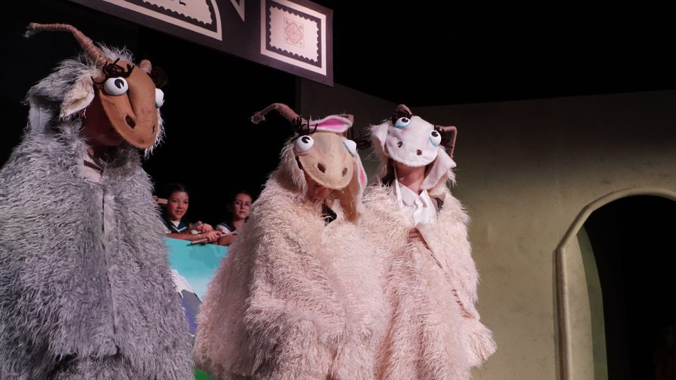 The stage crew of three, along with some cast members, made the scene changes flow. Technology aided the production values as the band was hidden on stage to make more seating available in the house and appropriate slides helped to set the scenes.