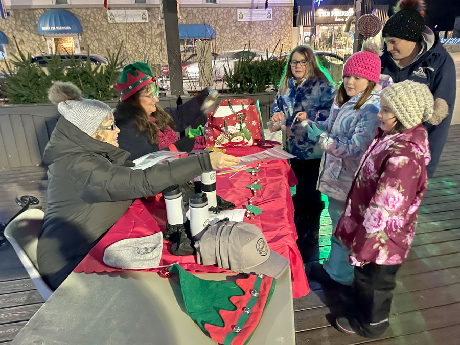Volunteers hand out s’more kits to youngsters in attendance. The evening also featured horse-drawn wagon rides and a visit from Santa and Mrs. Claus.