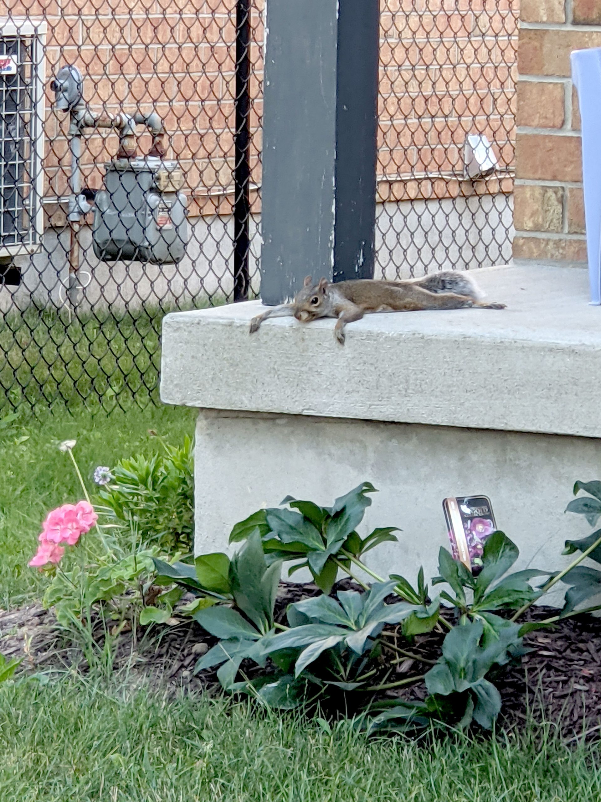 Heat haze – a squirrel was found on the front porch of an Elora residence on Aug. 27 after grabbing a peanut and taking a moment to rest. Submitted photo