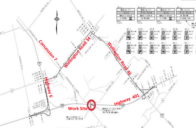 The detour route around the project site will include Highway 6 North, Wellington Road 34 and Wellington Road 46.