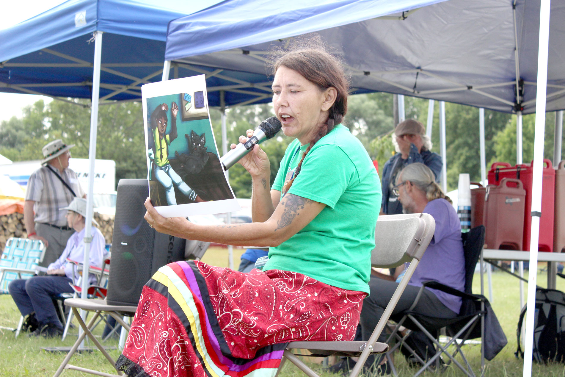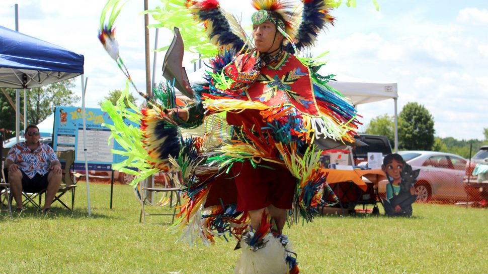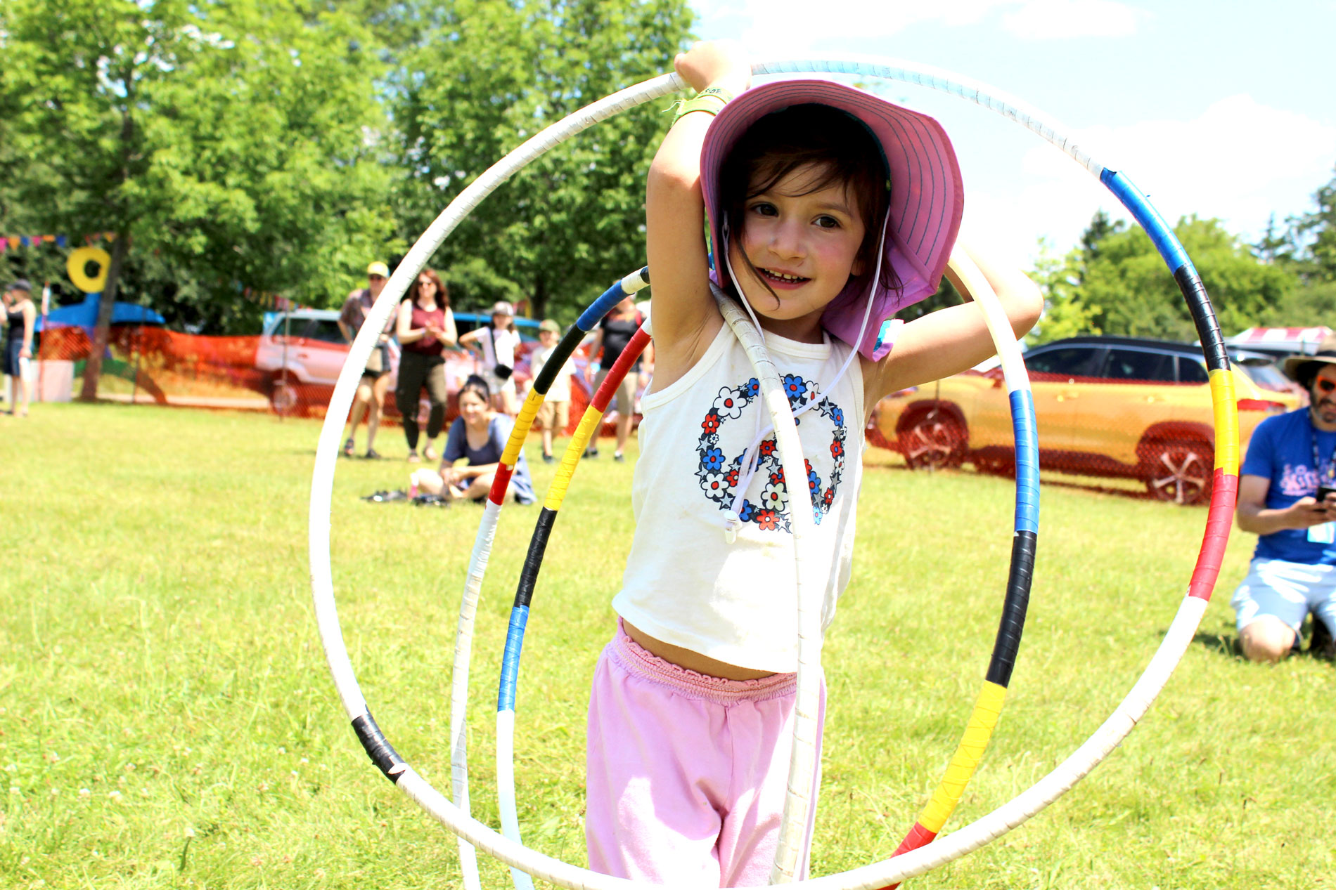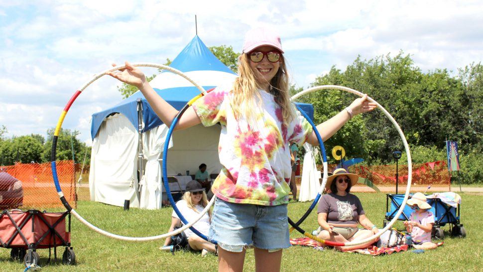 River Christie White performed a hoop dance, explained the significance of the hoops and the dance, and taught a group of children some hoop dancing moves in the Indigenous Circle at Hillside on July 20.