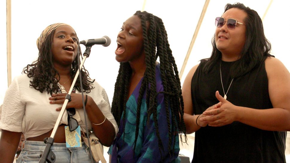 There’s a Sun Stage where attendees listen to poetry, laugh at stand-up comedy, and dance quietly during a “silent disco.”