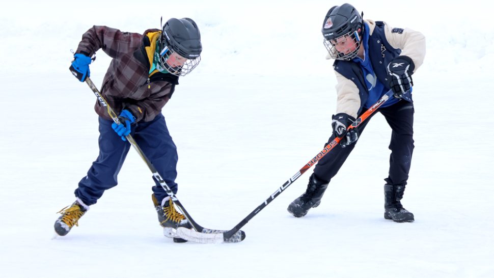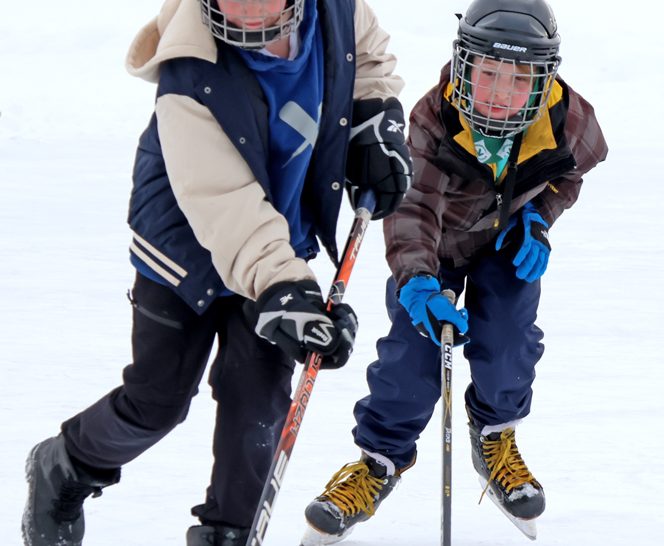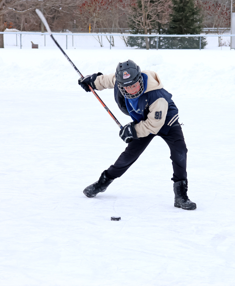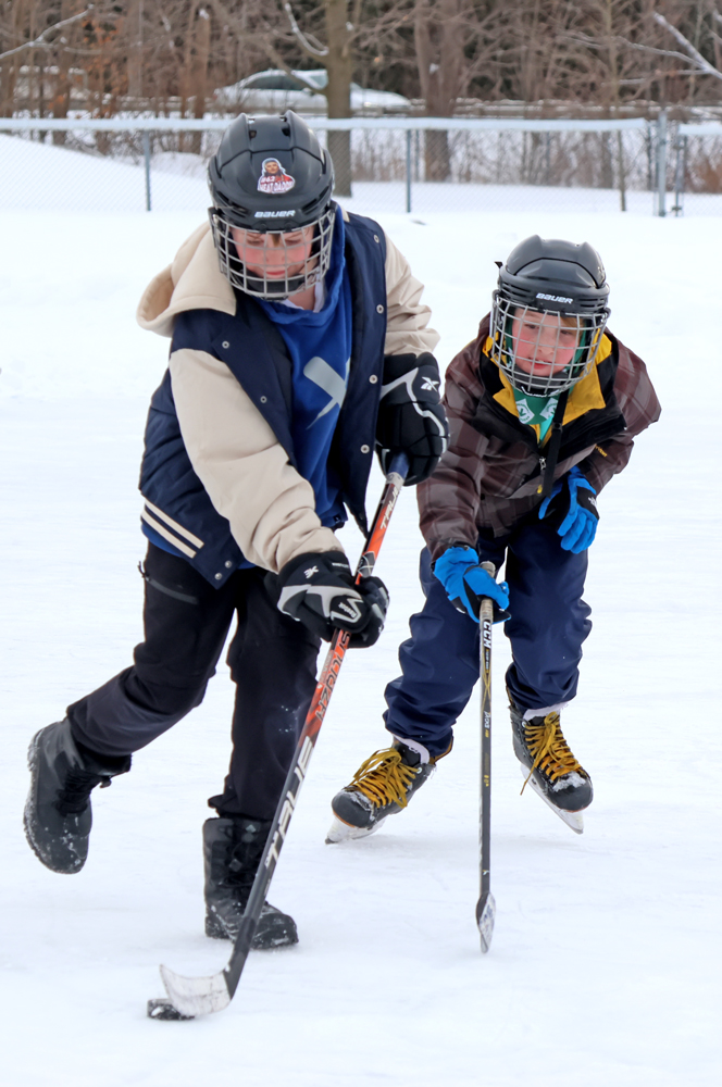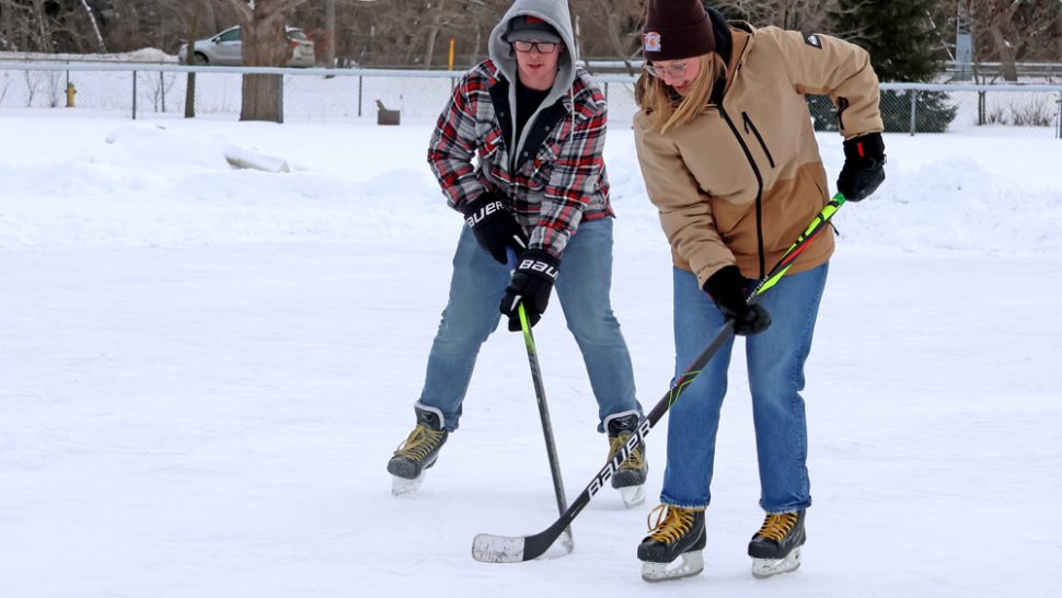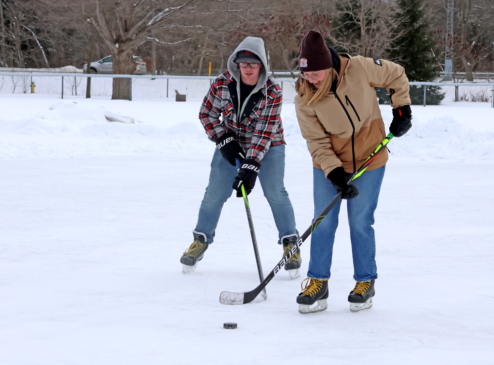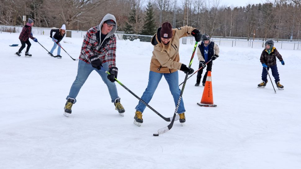 CENTRE WELLINGTON – Some people enjoying the outdoor rink beside the Elora arena on Jan. 18 included, from left: Silas Meerstra, Kate Bouwers, Tim Vanleeuwen, Bethany Meerstra, Axel Forster and Finn Jensen.