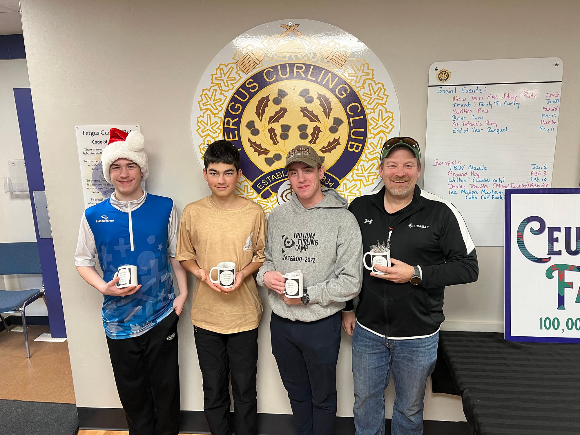 FERGUS – The Hugh Black Bonspiel at the Fergus Curling Club on Dec. 2 honoured the Black family, members of which were among the original settlers of Fergus. Hugh Black was also the first president of the Fergus Curling Club in 1834. A descendant of the family, Senator Rob Black’s son, Michael, greeted the participants to open the bonspiel.