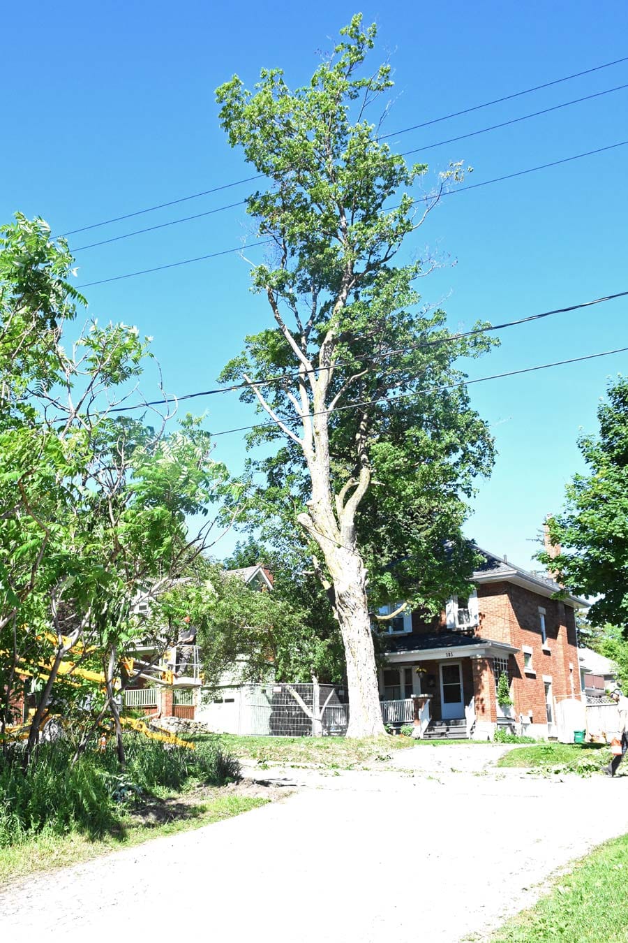 Tree comes down - The hundred-year-old maple tree on St. George Street that neighbours hoped could be saved, came down on June 15. The township said the tree had to be removed to make way for sewer work on the street, that also started June 15.