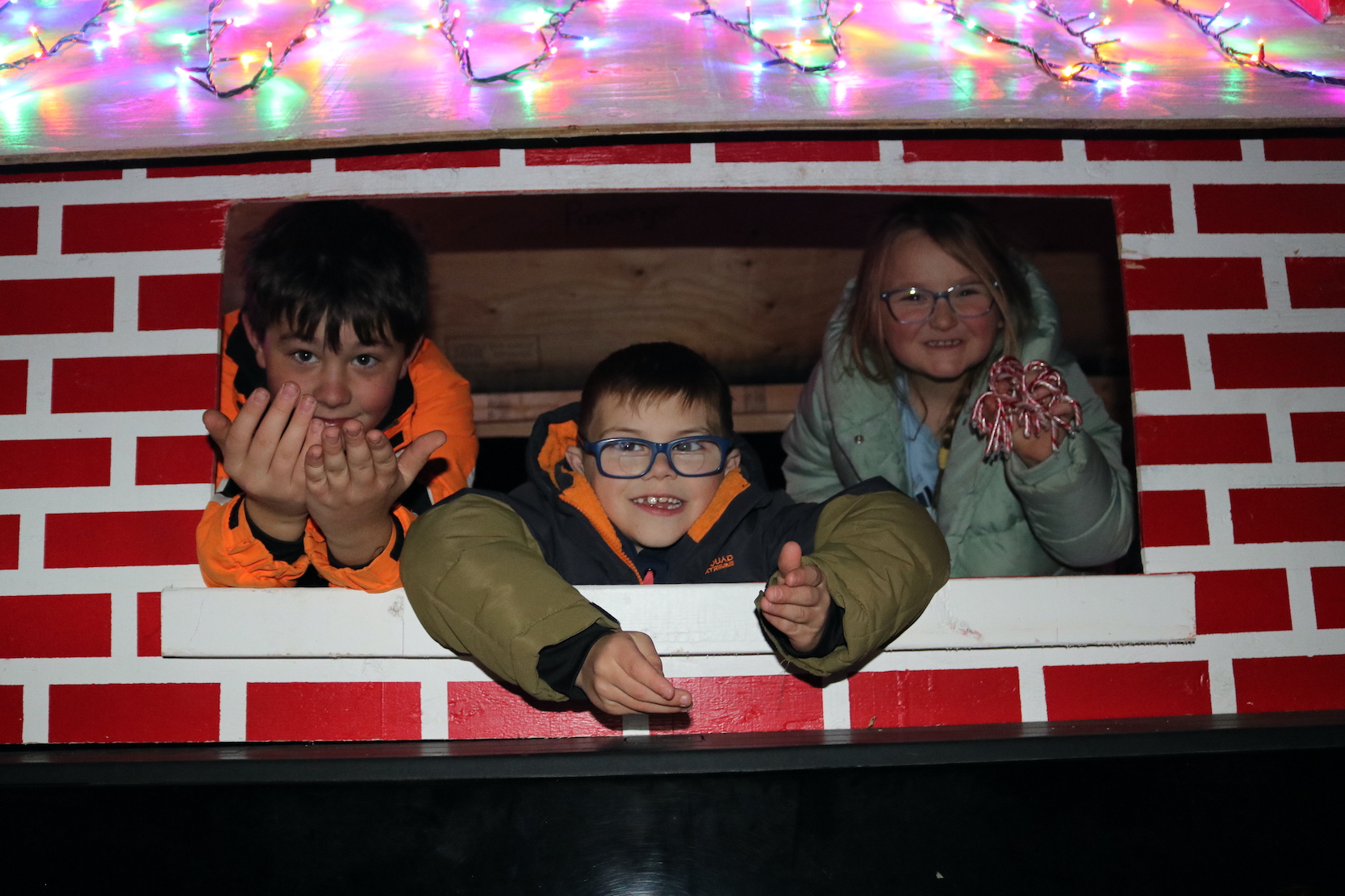 From left: Parker Allen, Connor Greenfield and Hannah Morrison handed out candy canes with big smiles on their faces. Photos by Georgia York