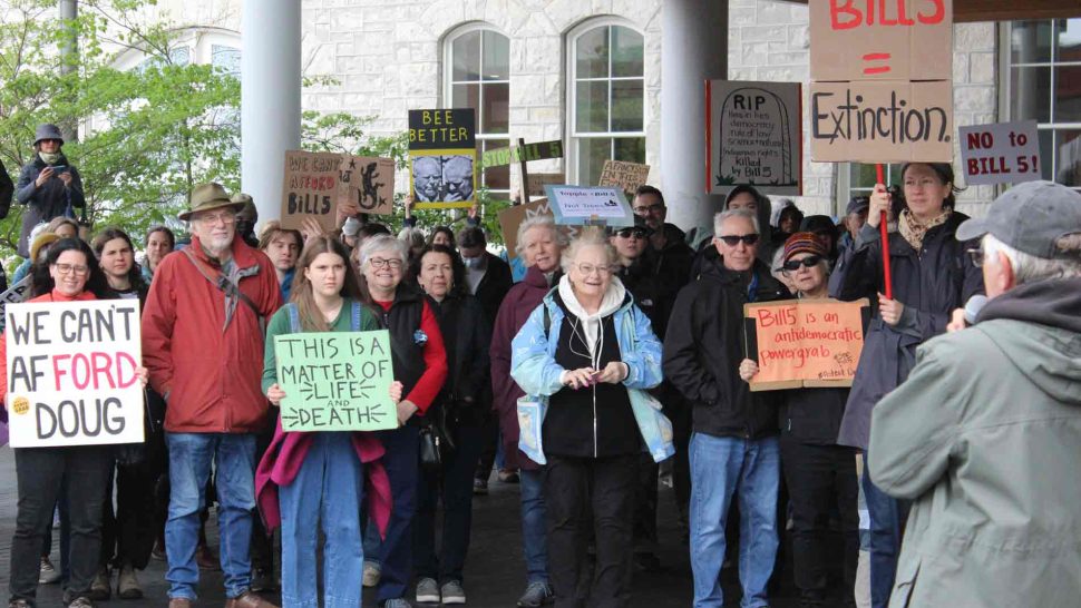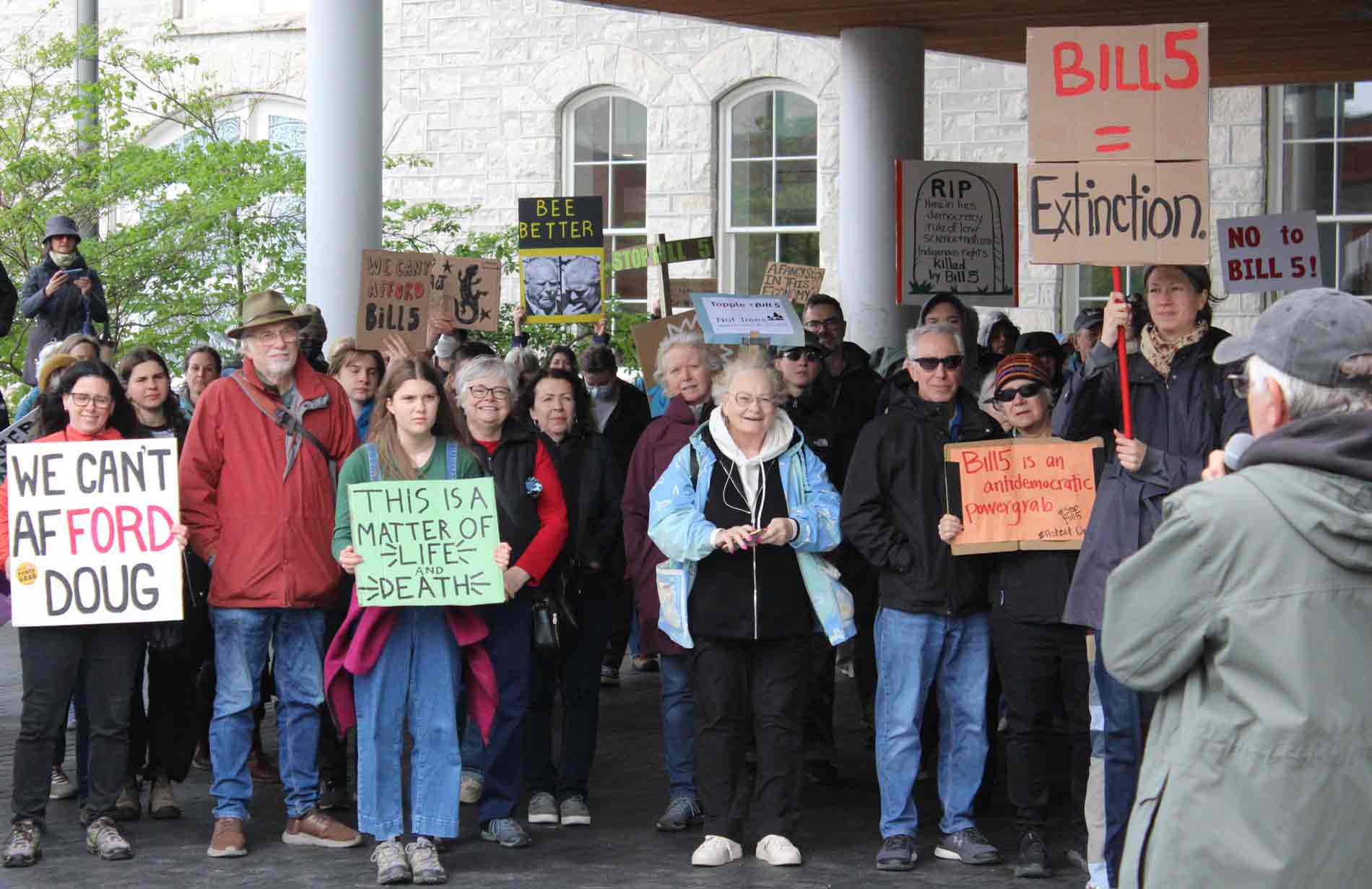 GUELPH – A grassroots protest was held in Guelph on May 24 in opposition to Bill 5, or the Protect Ontario by Unleashing Our Economy Act.