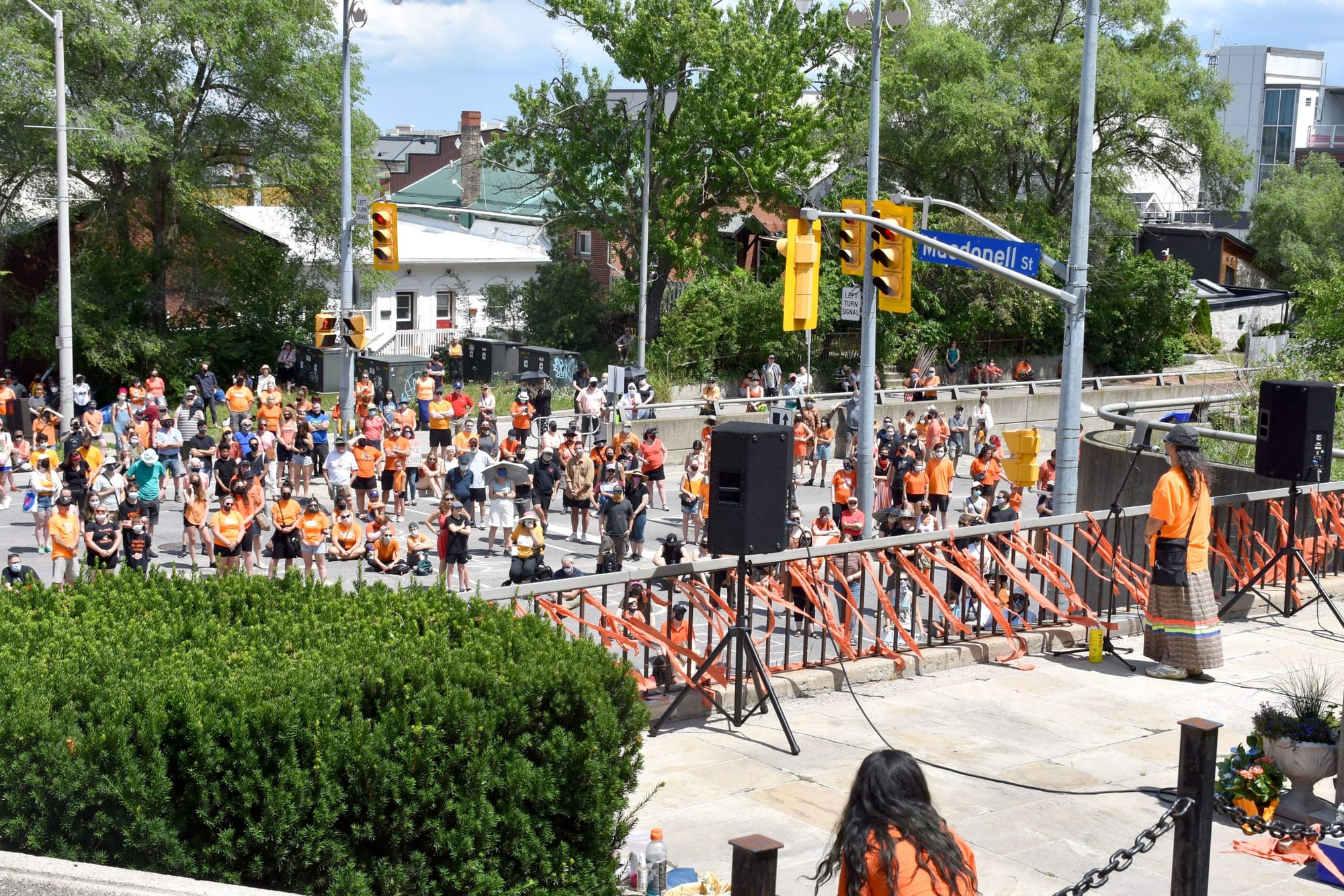 GUELPH – A crowd of hundreds marched through downtown Guelph on July 1, wearing orange shirts to show solidarity with Indigenous people.