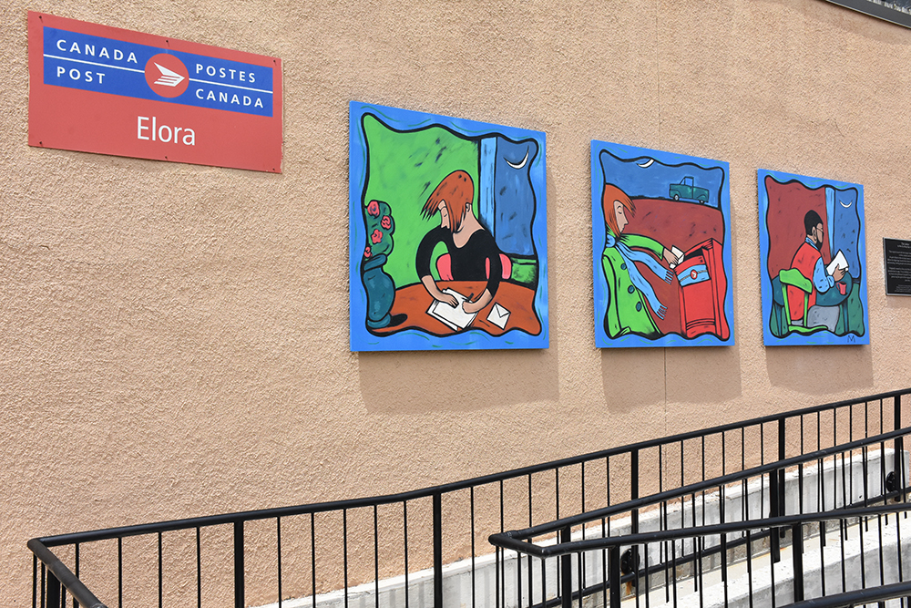 ELORA – The Letter by late Elora artist Marilyn Koop has been recreated and returned to its spot on the exterior wall of the Elora post office.